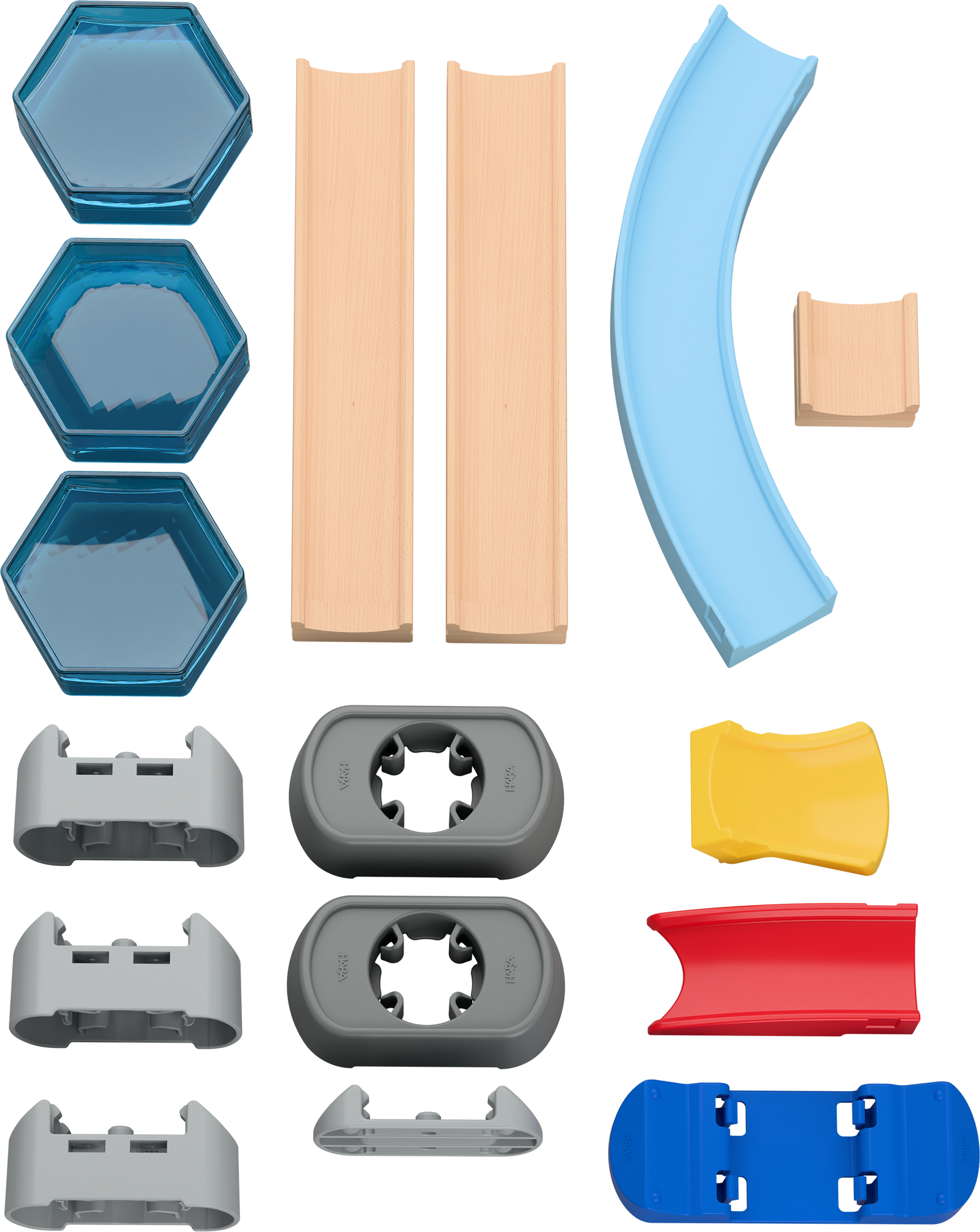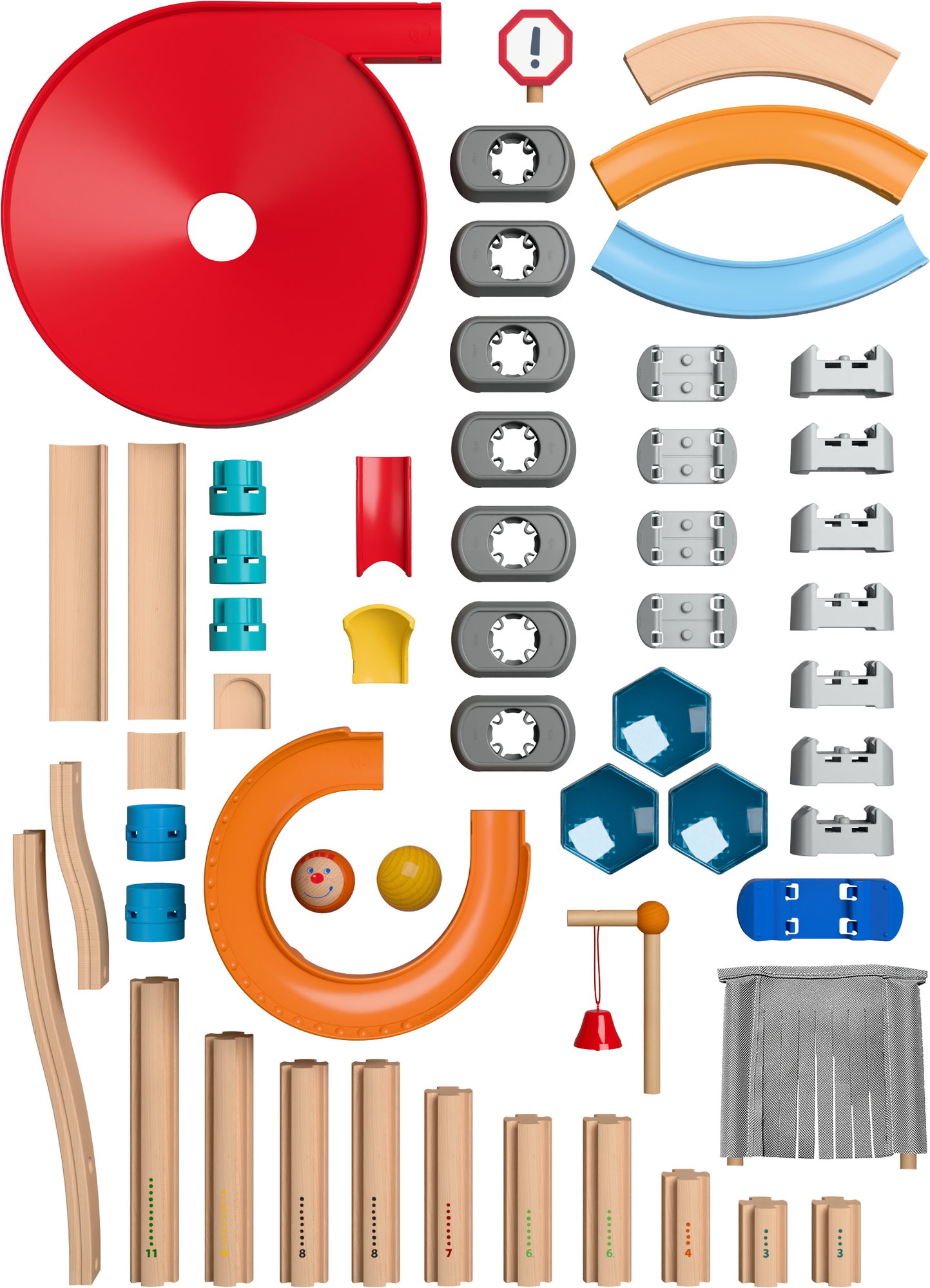 Krabica pre skvelú zábavu pri stavaní guľôčok, a to aj pre tých úplne najmenších! 56 jednotlivých dielikov a samotná krabica sa dajú poskladať a vytvoriť tak najmenej 10 rôznych dráh – vždy prispôsobených aktuálnej vývojovej fáze dieťaťa.