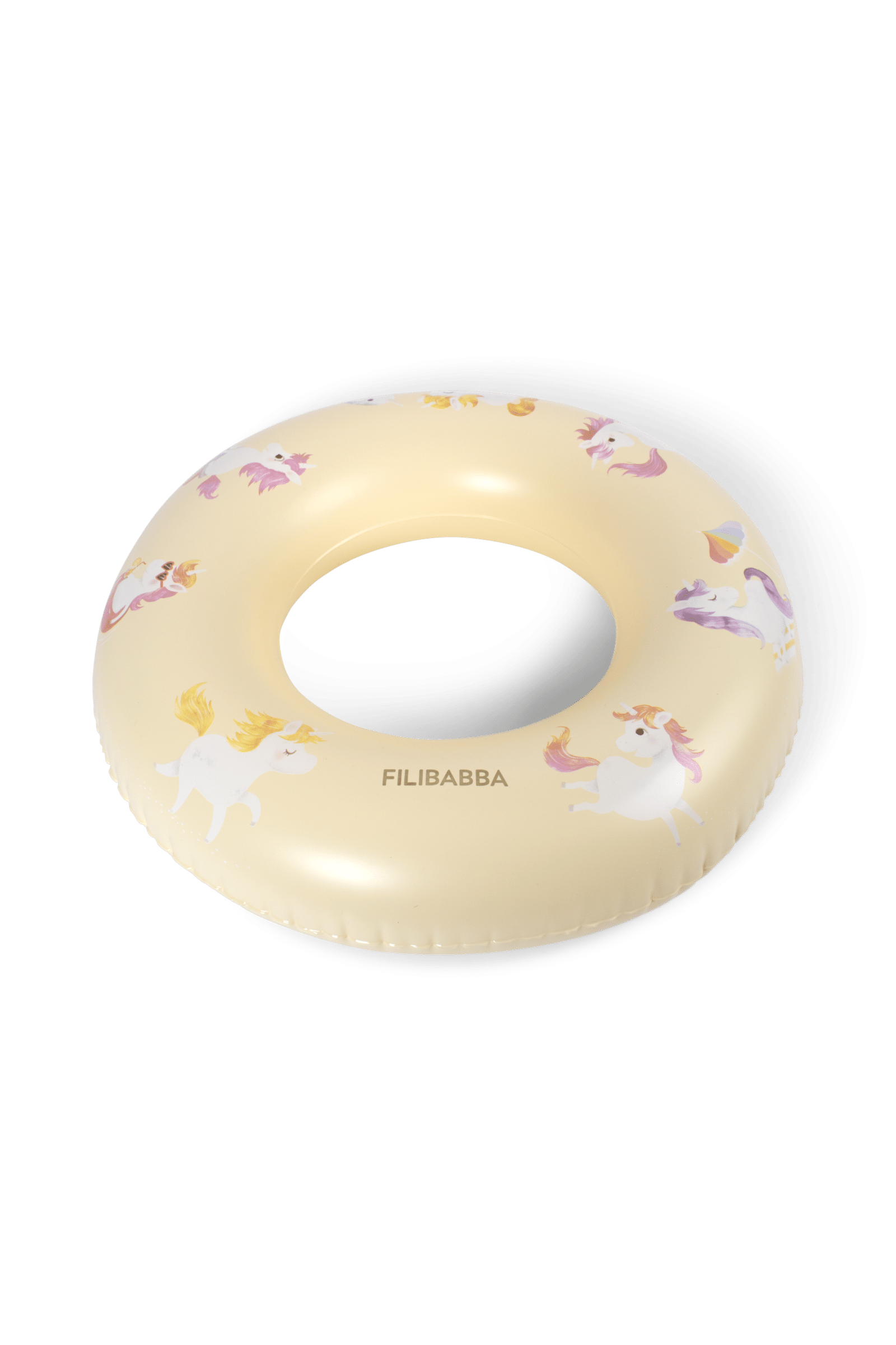 S nafukovacím kolesom bude pobyt na pláži alebo v bazéne ešte zábavnejší – dieťa si užije ešte viac špliechania a radosti vo vode. Koleso sa jednoducho nafukuje pomocou bezpečnostného ventilu, ktorý je možné zatlačiť dovnútra, aby pri používaní neprekážal. Je vyrobené z kvalitného PVC s hrúbkou 0,25 mm, ktoré zaručuje odolnosť a dlhú životnosť. Objavte tento čarovný vzor. Očarujúce jednorožce sa kĺžu po dúhach a jemne tancujú medzi vlnami, zatiaľ čo zvedavý malý narval vykukuje z trblietavého mora. Na jemnom žltom pozadí sa rozvíja snový letný svet plný fantázie a úžasu. Upozornenie: Nafukovacie koleso nie je záchranná pomôcka a nechráni pred utopením. Používa sa výhradne pod neustálym a zodpovedným dohľadom dospelej osoby. Deti musia byť vždy pod dohľadom pri vode aj v jej blízkosti. Do produktu sa nikdy neskáče ani sa z neho neskáče do vody. Produkt sa nenecháva vo vode alebo v jej blízkosti, ak sa nepoužíva. Pri používaní je potrebné dodržiavať dostatočnú vzdialenosť od okrajov bazéna a iných prekážok. Nepoužíva sa pri veternom počasí alebo v silnom prúde. Základné vlastnosti: