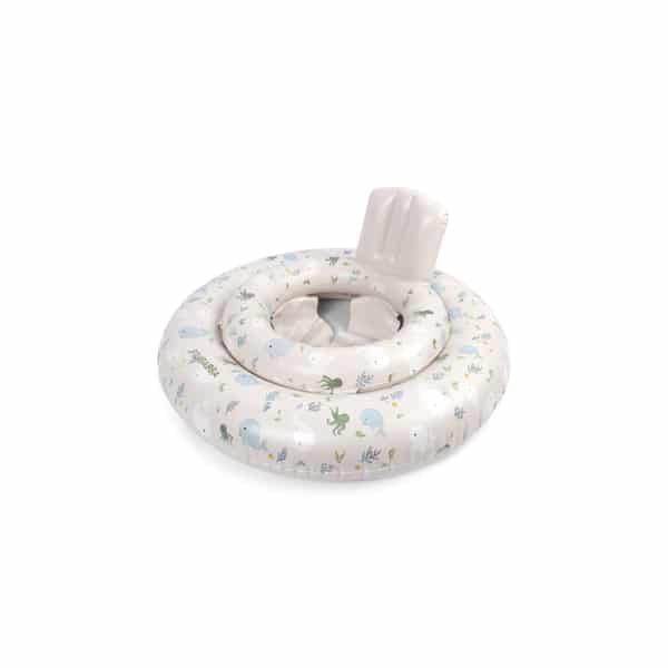 Detské šantenie vo vode je jedným z najkrajších prvých zážitkov! S detským plávacím kruhom si užijete pobyt pri mori či bazéne ešte viac – vaše bábätko môže objavovať vodu vlastným tempom, bezpečne po vašom boku. Váš dokonalý spoločník pri kúpaní má praktické sedadlo a chrbtovú opierku, ktoré poskytujú vášmu dieťatku bezpečnú oporu a pohodlie. Plavecký kruh je nafúknutý bezpečnostným ventilom, ktorý sa zasúva do kruhu a neprekáža pri vodných radovánkach. Koleso na kúpanie pre bábätká je vyrobený z obzvlášť kvalitného PVC s hrúbkou 0,25 mm. Ponorte sa do čarovného sveta pod vodnou hladinou, kde vás sprevádza veľryba Christian so svojou oceánskou rodinou. Jemné vlny na pokojnom svetlom podklade vytvárajú snovú atmosféru plnú detských dobrodružstiev. UPOZORNENIE: Kruh na plávanie pre bábätká nie je prostriedok na záchranu života a nechráni pred utopením. Preto by mal byť kruh na plávanie pre bábätká používaný len pod stálym a kompetentným dohľadom dospelej osoby. Nikdy nenechávajte deti bez dozoru vo vode alebo v jej blízkosti. Nikdy nenechávajte tento výrobok vo vode alebo v jej blízkosti, keď sa nepoužíva. Počas používania sa držte ďalej od okraja bazéna alebo akejkoľvek prekážky. Nepoužívajte tento výrobok, keď je veterno alebo vo vode so silným prúdom. Vlastnosti: