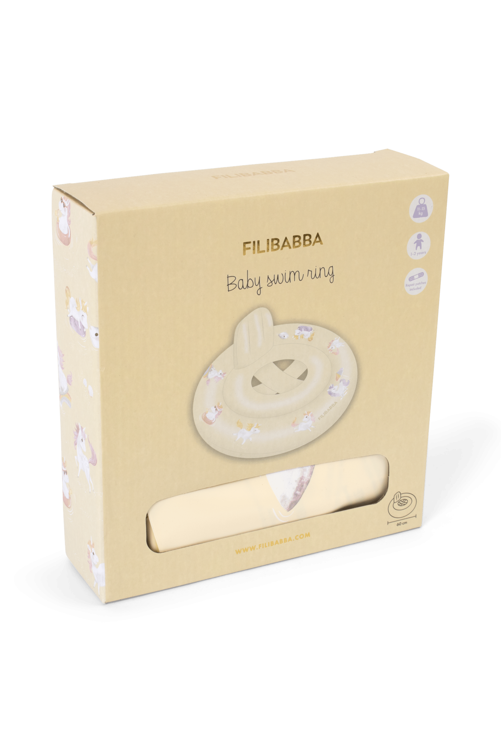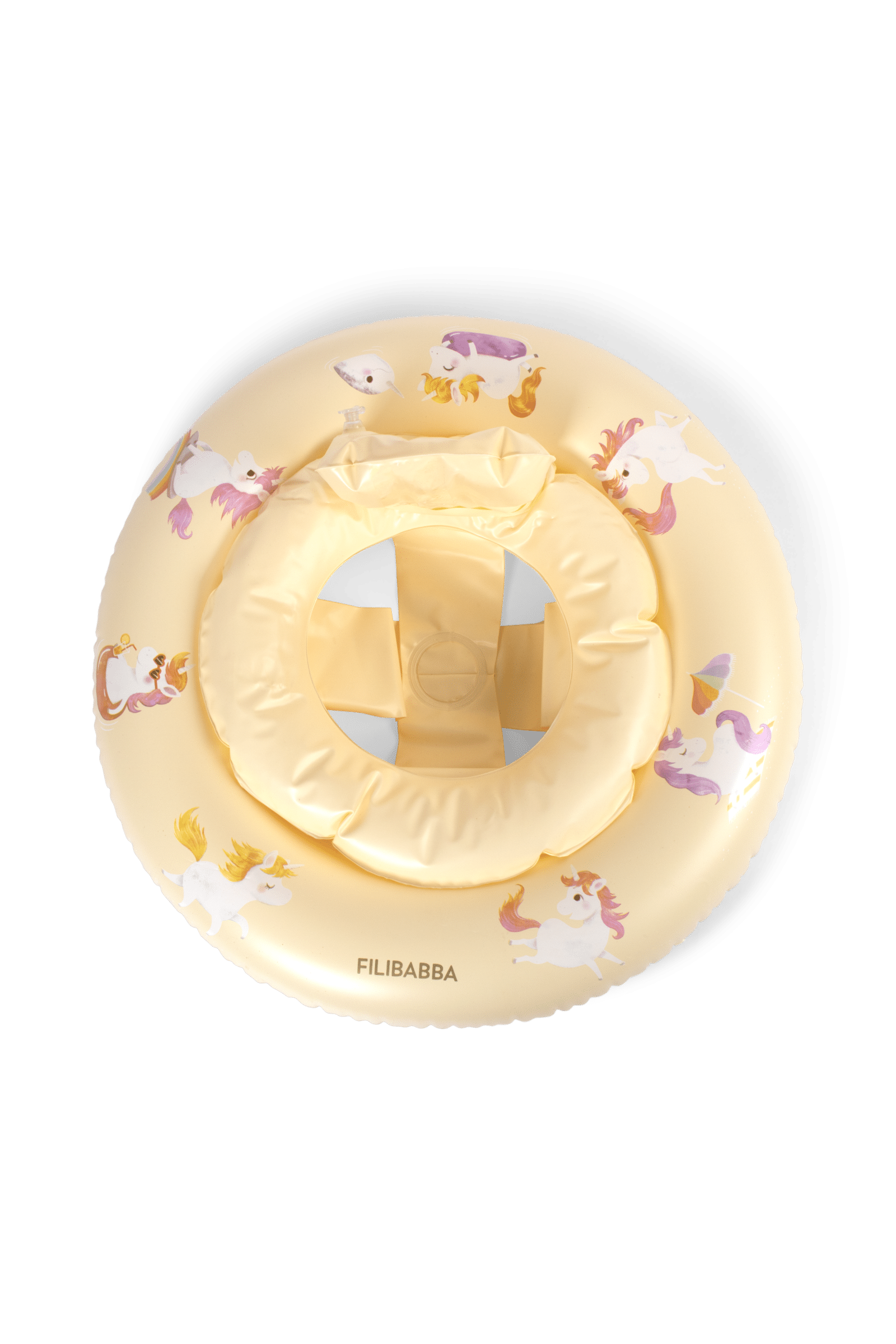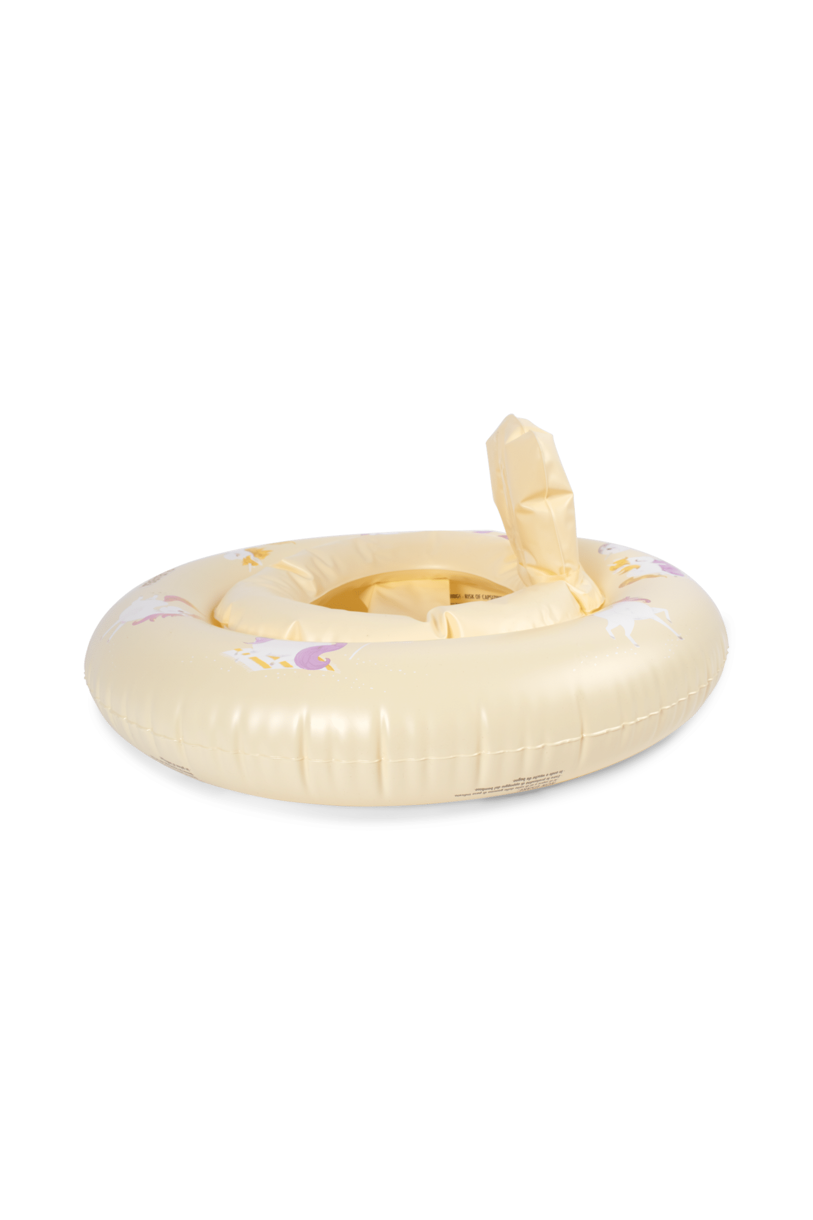 Detské šantenie vo vode je jedným z najkrajších prvých zážitkov! S detským plávacím kruhom si užijete pobyt pri mori či bazéne ešte viac – vaše bábätko môže objavovať vodu vlastným tempom, bezpečne po vašom boku. Váš dokonalý spoločník pri kúpaní má praktické sedadlo a chrbtovú opierku, ktoré poskytujú vášmu dieťatku bezpečnú oporu a pohodlie. Plavecký kruh je nafúknutý bezpečnostným ventilom, ktorý sa zasúva do kruhu a neprekáža pri vodných radovánkach. Koleso na kúpanie pre bábätká je vyrobený z obzvlášť kvalitného PVC s hrúbkou 0,25 mm. Objavte čarovný detský motív. Očarujúce jednorožce sa kĺžu po dúhach a jemne tancujú medzi vlnami, zatiaľ čo zvedavý malý narval vykúka z trblietavého mora. Na jemnom žltom pozadí sa rozvíja snová letná krajina plná fantázie a úžasu. UPOZORNENIE: Kruh na plávanie pre bábätká nie je prostriedok na záchranu života a nechráni pred utopením. Preto by mal byť kruh na plávanie pre bábätká používaný len pod stálym a kompetentným dohľadom dospelej osoby. Nikdy nenechávajte deti bez dozoru vo vode alebo v jej blízkosti. Nikdy nenechávajte tento výrobok vo vode alebo v jej blízkosti, keď sa nepoužíva. Počas používania sa držte ďalej od okraja bazéna alebo akejkoľvek prekážky. Nepoužívajte tento výrobok, keď je veterno alebo vo vode so silným prúdom. Vlastnosti: