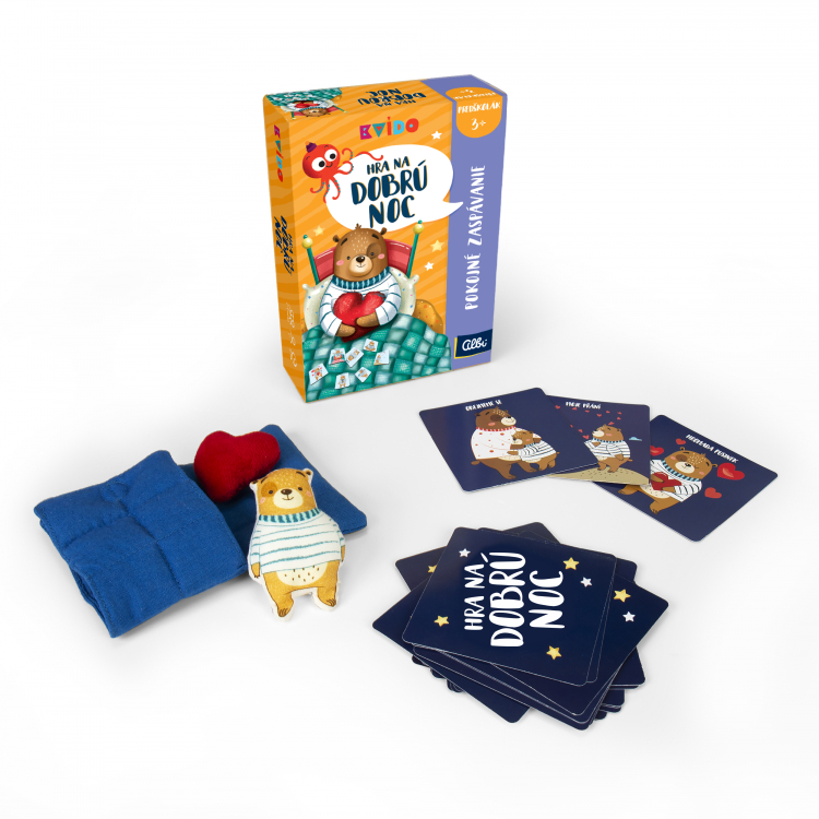 Jedinečná hra pred zaspatím, ktorá spestruje spoločné chvíle dieťaťa s rodičmi. Dokonalý spôsob, ako zakončiť deň. Dieťa sa upokojí a uistí sa, že je milované. Hra je zakaždým iná. Aktivity sa každý večer striedajú a môže ich robiť dieťa aj dospelý. Deti v tejto hre postupne obracajú karty s aktivitami, kým nenájdu 3 karty toho, čo potrebuje medvedík na to, aby zaspal: vankúšik, prikrývku a srdiečko. Potom uložia medvedíka do postieľky a vy si spolu užijete vybrané aktivity, napríklad spievanie, uvoľňujúcu jogu alebo dýchanie, podelíte sa o zážitky z celého dňa, dáte si pusinky a objatia a možno sa necháte aj poštekliť. Hra obsahuje textilného medvedíka, perinku s vankúšikom a plyšové srdiečko. Hra pozostáva z 23 kariet s rôznymi úlohami a aktivitami a prehľadovej karty s jogovými pozíciami a vedomým dýchaním.