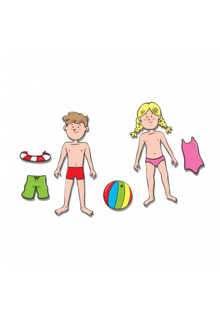 V tejto hre nájdete 68 farebne ilustrovaných magnetiek jednotlivých častí oblečenia a doplnkov pre dve deti – Terezku a Branka, ktorí sú na statických samolepkách. Nájdete tu aj 16 kariet s farebnými obrázkami rôznych situácií, ktoré sa z nich dajú poskladať. Deti môžu poskladať obrázok z magnetiek podľa predlohy na kartičke alebo podľa sluchovej pamäti po tom, čo im dospelý prečíta opis obrázka zo zadnej strany kartičky. Samozrejme, dajú sa zostaviť aj rôzne obrázky podľa vlastnej fantázie. Deti sa touto hrou učia rozlišovať tvary, farby, rozvíjajú svoju kreativitu, fantáziu a jemnú motoriku. Tvorivé magnetky Obliekanie rozvíjajú: zrakové vnímanie sluchovú pamäť rozoznávanie tvarov a farieb vlastnú fantáziu a kreativitu jemnú motoriku Obsah: 68 farebných magnetiek 2 statické samolepky postavičiek (dvakrát) 16 ilustrovaných kartičiek so zadaním (na druhej strane je opis situácie) 4 rôzne pozadia na tvorenie 4 magnetky na uchytenie pozadia návod