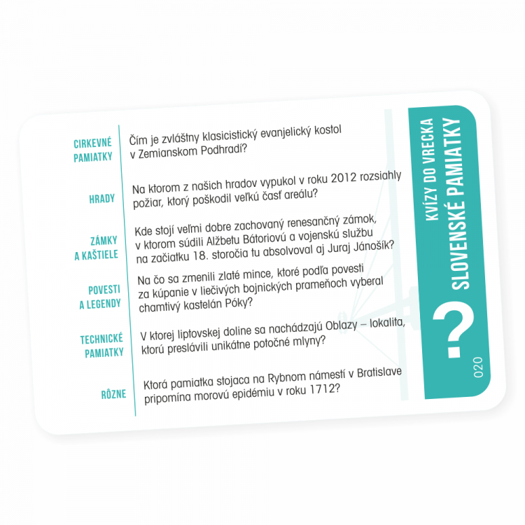 Pútavý zábavný kvíz o Slovenských pamiatkach. Hra je vďaka svojmu prevedeniu vhodná aj na cesty – st...zobrazit více