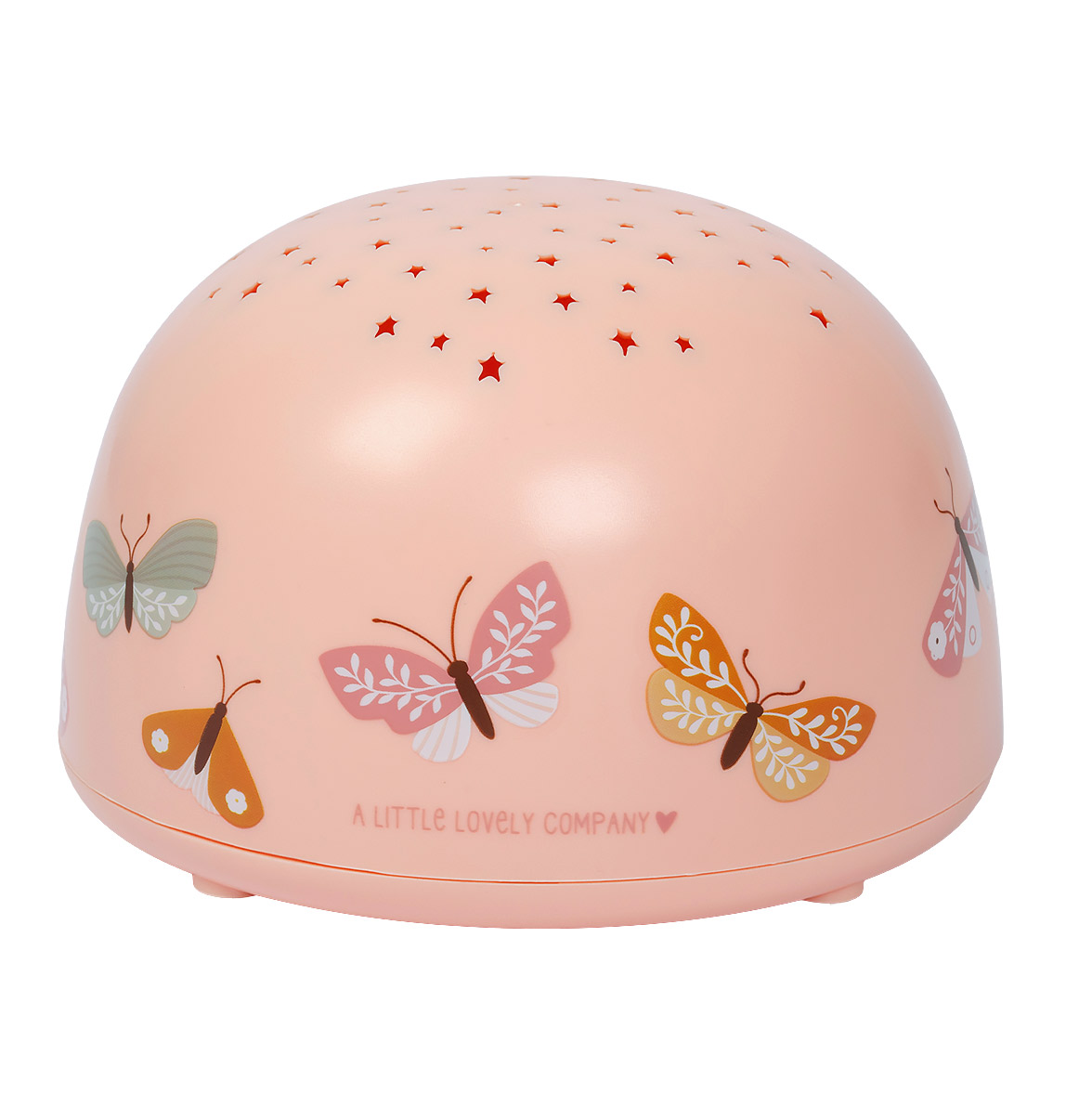 Zaspávajte pod krásnou hviezdnou oblohou. Ružová lampa s projektorom s ilustráciou motýlikov premiet...zobrazit více