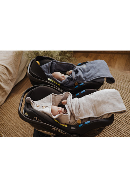 Zavinovačka se bezpečně vsadí do autosedačky a miminku nespadne ani když bude kopat nožičkami. Deka skvěle drží na svém místě a nemusíte se bát, že se v průběhu jízdy miminko odkope. Po rozepnutí knoflíků můžete zavinovačku použít také jako deku či přikrývku. Je to zkrátka nepostradatelný pomocník na cestách s miminkem!