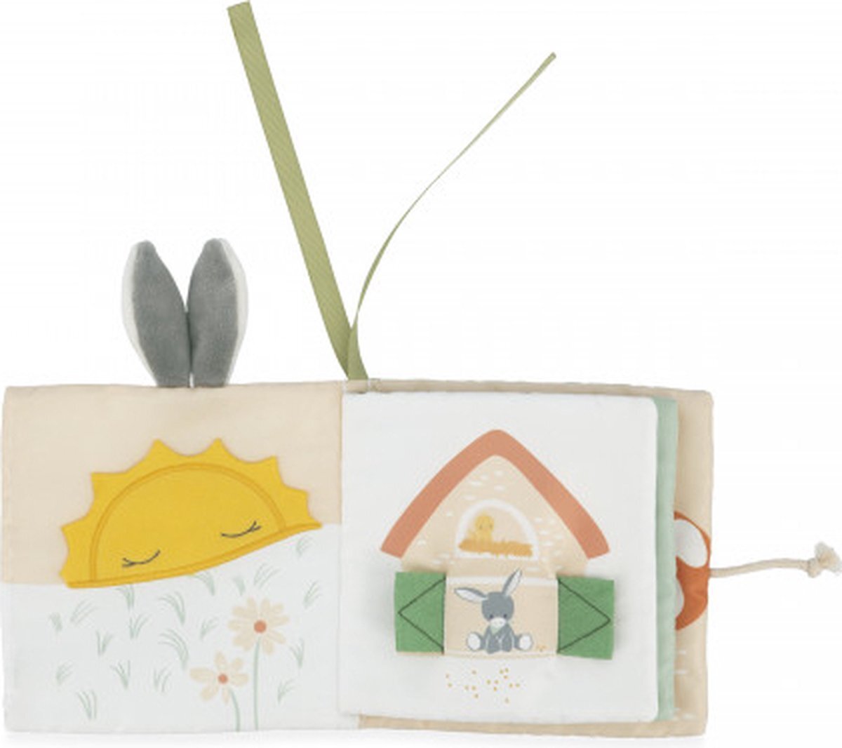Ste pripravení na deň na farme s oslíkom Réglissom? Táto látková knižka je ideálna na rozprávanie prvých príbehov vášmu dieťatku už od narodenia. Pred spaním alebo pre chvíľku pokoja a upevnenia puto pozvite svoje dieťatko, aby s vami preskúmalo farmu! Táto obrázková knižka ponúka nežné ilustrácie, krásny príbeh, látky na skúmanie končekmi prstov a zábavné aktivity, aby ste v dieťatku vzbudili jeho zvedavosť a stimulovali jeho zrak a hmat. Náš drahý priateľ oslík Régliss cestuje po farme a navštevuje svojich zvieracích kamarátov: aby príbeh ožil, súčasťou tejto knižky s aktivitami je malá plyšová hračka oslík. Táto super mäkká hračka sa dá použiť na pohladenie a upokojenie detskej pokožky, ale aj na prehrávanie Réglissových dobrodružstiev a na rozosmiatie vášho drobčeka. Ďalšou výhodou tejto vzdelávacej hračky sú pekné zelené stužky, ktoré vám umožňujú zavesiť látkovú knižku kamkoľvek, čo umožní vášmu dieťatku samostatne si ju užiť. Môžete ich tiež použiť na pripevnenie mäkkého oslíka k obrázkovej knižke, aby ste ho nestratili. Táto látková knižka má výšku 14 cm a je vyrobená z poplínu, mikrovelúru, úpletu a bavlny. Oslík má výšku 11 cm, je vyrobený z mikrovelúru a syntetickej kožušiny (polyester) a je podšitý recyklovaným polyesterom. Perfektný darček pre bábätko: táto knižka nabáda k zdieľaniu, objavovaniu a fantázii. Obrázkovú knižku a plyšovú hračku je možné prať v práčke pri teplote 30 °C.