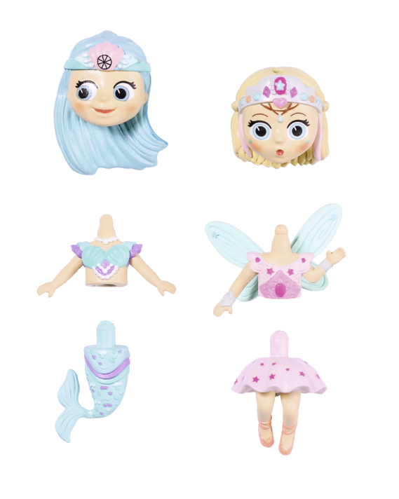 Vymieňaj bábikám hlavu, trup a nohy a vytvor tak úplne novú postavičku. Hlavička s vláskami ozdobený...zobrazit více