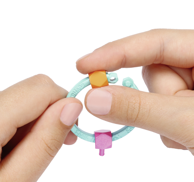 Dalmatín na náramku, hamburger na batohu, gitara na náhrdelníku alebo teniska na džínsovej bunde. Nacvakni prívesky presne podľa toho, akú máš práve náladu! Existuje viac ako 100.000 rôznych kombinácií. Niekde sa schováva aj trblietavý prívesok! LIL 'SNAPS sú balíčky s prekvapením, ktoré hravo kombinujú bábiky a šperky. Deti od piatich rokov môžu vytvárať nové a obmieňať existujúce LIL 'SNAPS šperky a módne doplnky znovu a znovu. Malé kráľovné krásy môžu ozdobiť nielen seba, ale aj ich obľúbené doplnky, ako napríklad batoh, ceruzku alebo džínsovú bundu. • LIL 'SNAPS • Na hranie, zbieranie a vymieňanie • Ako šperky alebo módne doplnky LIL 'SNAPS Prívesky (1. séria). V "diamante" nájdete: 2 prívesky, 2 konektory, 1 oddeľovač, 1 koliesko, 2 farebné spojovacie šnúrky.