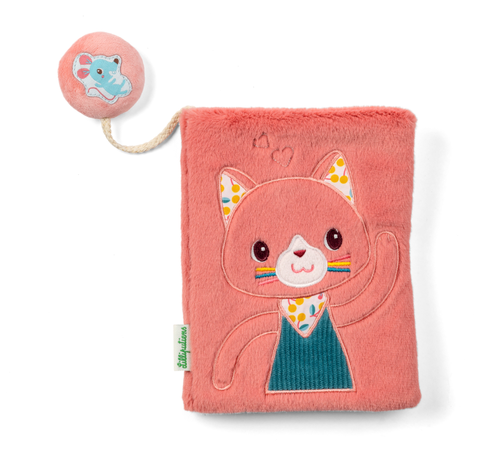 Prvý fotoalbum pre prvé spomienky! Tento mäkký látkový fotoalbum umožňuje vášmu dieťaťu mať fotografie svojich blízkych po ruke. Je vhodný pre deti od 9 mesiacov. Fotoalbum s mačičkou Jeanne má 10 vreciek, špeciálnu záložku s myškou: na zadnú stranu vložte fotografiu svojho dieťaťa a album si tak personalizujte. Jej guľatý tvar je ideálny pre malé deti, ktoré sa s ňou môžu hrať alebo ju používať ako záložku. Je to ideálna vizuálna pomôcka, ktorá zabaví vaše dieťa počas dlhej cesty alebo dlhého čakania. Album má iba otierateľný povrch.