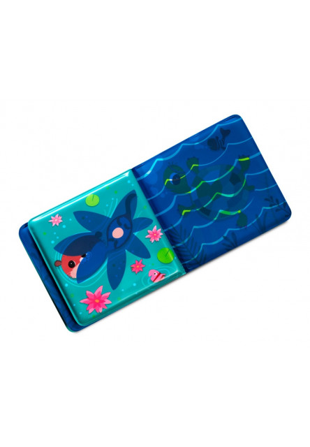 Hračka do vody, vhodná pre najmenšie deti od 12 mesiacov. Kúzelná knižka ohromí deti schovanými obrázkami. Keď knižku ponoríte do vody teplej 32 °C a viac na stránkach sa objavia nové ilustrácie. Líška si tak naraz pláva v lodičke. Rozmery knižky sú 13 x 13 x 2 cm.