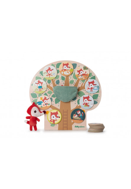Predstavujeme jedinečný spôsob, ako zapojiť vaše deti do plánovania ich dňa a rozvíjania rozprávačských zručností s touto čarovnou magnetickou drevenou tabuľou v tvare stromu. Tento výukový panel prináša zábavu a vzdelávanie v jednom. Deti môžu pomocou guľatých magnetických kartičiek zobrazujúcich rôzne momenty z každodenného života rozprávať svoj vlastný príbeh alebo plánovať nadchádzajúci deň. Tento interaktívny panel umožňuje deťom nielen vyjadriť svoje emócie a rozvíjať schopnosť rozprávať, ale tiež podporuje ich kreativitu a organizáciu. Tabuľa sa stane nielen výukovým nástrojom, ale tiež obľúbeným miestom, kde sa každý deň odohráva nový príbeh. K dispozícii je tiež mini postavička, líška Alice, ktorá spinká v pokoji vo svojej hojdacej sieti uprostred stromu alebo sprevádza dieťa pri rozprávaní príbehu. Vyrobené z kvalitného FSC dreva, doplnené o látkovú hojdaciu sieť a magnetické prvky, ktoré sú bezpečné a odolné. Povrch je umývateľný. Tento výukový panel je ideálny pre deti od 2 rokov, ktoré si tak môžu hravou formou osvojiť každodennú rutinu. Rozmery: 28,5 cm x 27,6 cm x 7 cm.