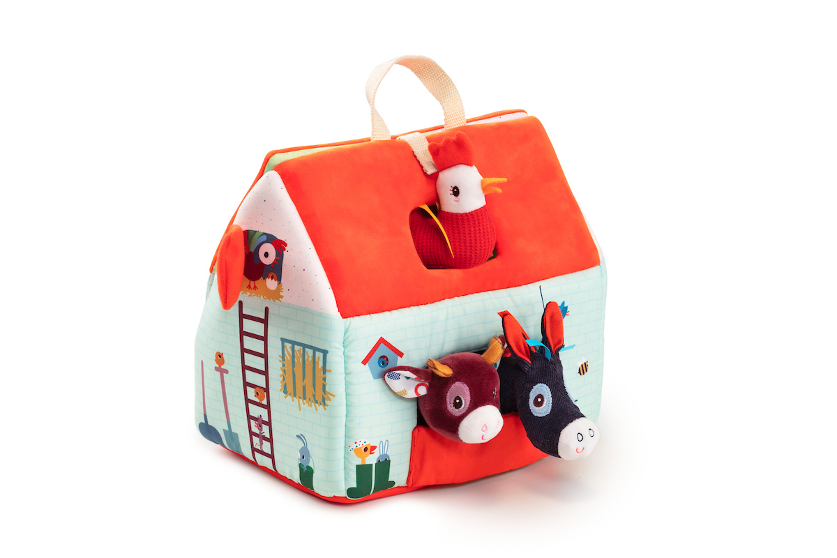 Krásna textilná farma so zvieratkami, farmárom i s traktorom. Všetko je ušité z kvalitných materiálov. Farma je krásne pestrofarebná a pre deti sú podnetné rôzne textúry. Strecha i dvere sa pripevňujú pomocou suchého zipsu.Na tejto farme panuje veselá nálada na dvore plnom zvieratiek. Oslík Ignác, prasiatko Simon, kravička Rosalie, ovečka Yvon, kuriatko Paulette a kačička Gaspart sú šťastní obyvatelia tejto farmy. Farmár jazdí na pole na traktore. Každý obyvateľ farmy tu má svoje miesto a všetci radi priložia ruku k dieluDomček má rukoväť, deti ho tak môžu jednoducho prenášať z miesta na miesto. Stačí otvoriť dvere a už sa môžu odvíjať veselé príbehy farmára a jeho zvieratiek. Pre najmenšie deti je táto hračka ako cesta za poznaním. Rozmery uzatvoreného domu sú 22 x 23 x 16 cm. Možno prať v práčke pri 30 °C na jemný cyklus. Vyrobené z kvalitného 100 % polyesteru. Ideálna hračka pre deti od 18 mesiacov.