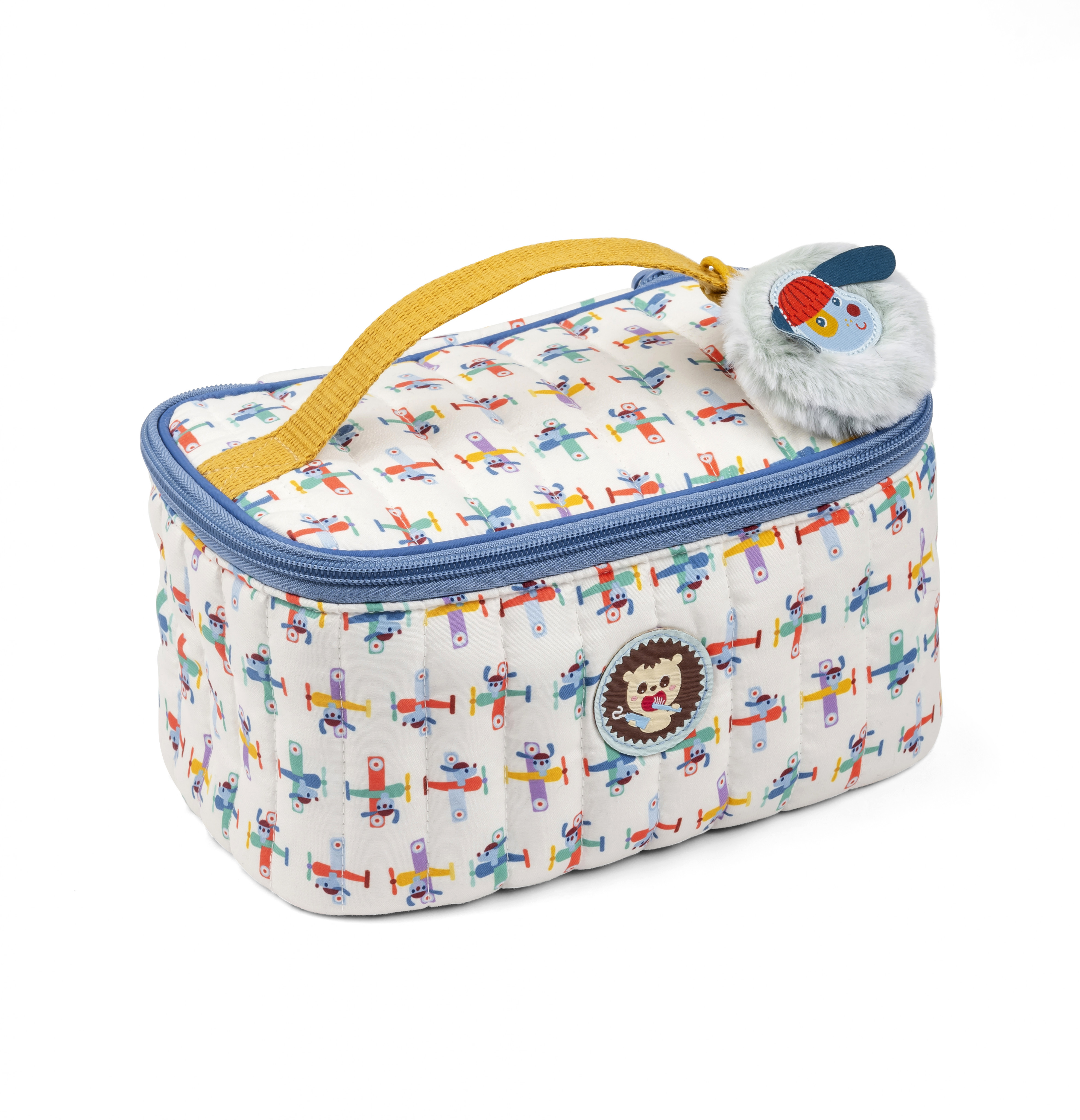 Táto detská toaletná taštička je vhodná pre deti od 2 rokov a očarí svojou trendy modrou farbou a potlačou lietadiel. Je vyrobená z mäkkého a odolného polyesteru. Široký zips ponúka rýchly prístup k obsahu: každé dieťa si svoje toaletné potreby ľahko nájde. Dve vnútorné bočné vrecká a elastické pásiky hore zaručujú skvelú organizáciu: zubné kefky, sponky do vlasov, krémy a tuby všetkých veľkostí majú svoje miesto. S rozmermi 21 x 14 x 13 cm sa táto malá toaletná taštička ľahko vojde do cestovnej tašky alebo kufra na dovolenku. Ľahko sa udržuje a možno ju prať v práčke na 30 °C na jemný cyklus. Je kompatibilná a ladí s cestovnou taškou psík Jules, takže si môžete vytvoriť zladenú súpravu na všetky cesty!