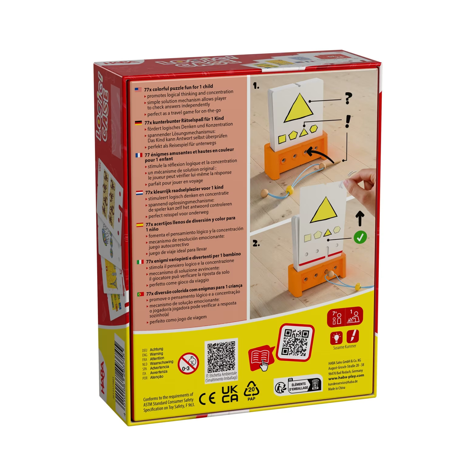 HABA Logic! CASE Expansion – Rozširujúca sada prináša ďalšiu porciu 77 pestrofarebných hádaniek, ktoré nadväzujú na obľúbený koncept logických hier pre jedného hráča. Tieto sady sú navrhnuté tak, aby boli farebné, náročné a rozmanité, pričom efektívne stimulujú logické myslenie a schopnosť sústrediť sa. Hlavným lákadlom je napínavý mechanizmus sebakontroly: dieťa sa pokúša vyriešiť úlohu a pomocou dreveného kolíka si overí správnosť svojej odpovede. Ak sa karta dá vytiahnuť, hádanka bola vyriešená správne! Tento proces posilňuje vnútornú motiváciu a kompetenciu samostatne riešiť problémy. Rozširujúce sady Logic! CASE Extension umožňujú jednoducho a flexibilne dopĺňať štartovacie sady o nové témy a vyššie stupne náročnosti, takže hra zostáva stále napínavá a čerstvá. Vďaka kompaktnému formátu je to ideálna zábava na cesty. 77 nových pestrých hádaniek pre ešte viac logickej zábavy Unikátny systém sebakontroly, ktorý podporuje samostatnosť Ideálne na rozšírenie základných sád o nové témy a obtiažnosti Rozvíja logické uvažovanie, koncentráciu a trpezlivosť Skvelá cestovná hra, ktorá sa zmestí do každého batohu Vek: 7+