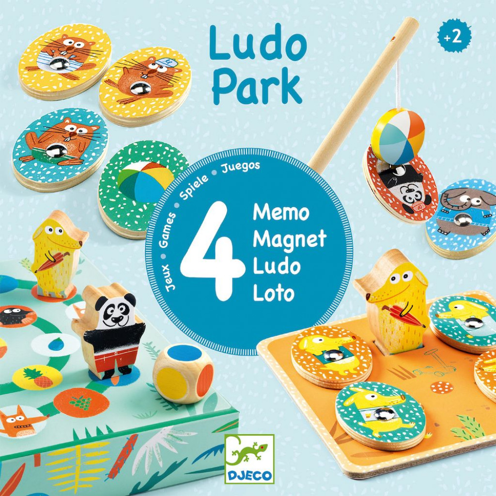 Vďaka maximálne vydarenému dizajnu chcete pri pohľade na LudoPark len jedno: hrať sa! S týmto súborom 4 hier sa môžete zahrať chytanie magnetickou udicou, loto, pexeso a doskovú hru. Hra obsahuje drevené a magnetické diely. Odporúčaný vek: 2+
