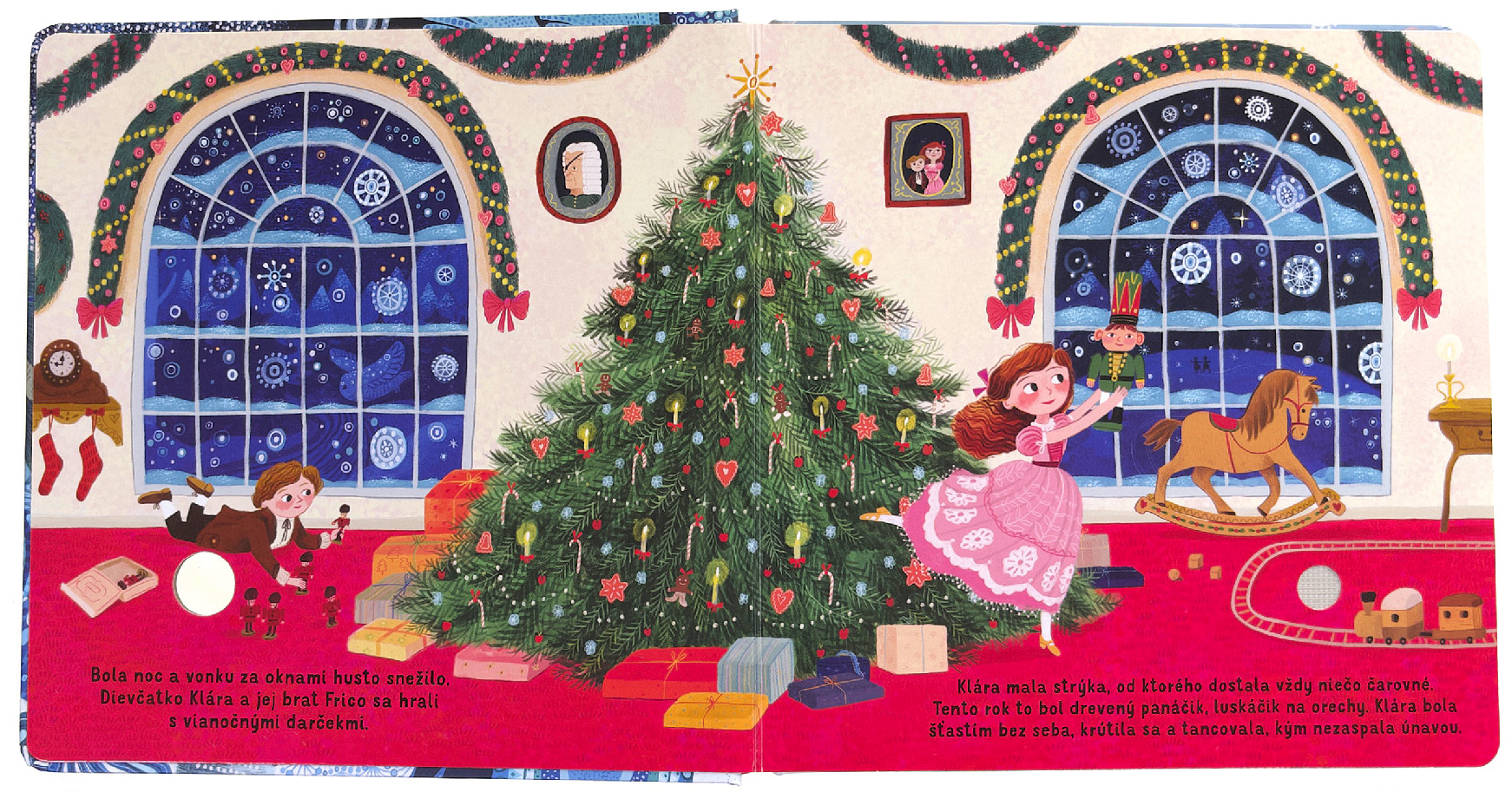 Poďte sa s deťmi ponoriť do čarovného vianočného príbehu malej Kláry a statočného dreveného panáčika, Luskáčika. Užite si ich rozprávkové dobrodružstvo s Myším kráľom a Cukrovou vílou v Kráľovstve sladkostí. Tento pôvabný klasický príbeh je doplnený nádhernou hudbou Petra Iľjiča Čajkovského, ktorá zaznie po stlačení tlačidla. Nechajte sa unášať na vlnách krásnej melódie a vstúpte do ríše rozprávok a snov.