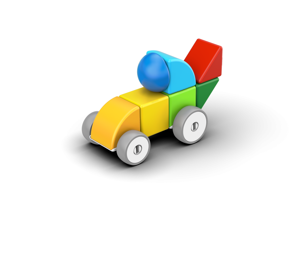 Magnetická stavebnice Geomag Magicube obsahuje 7 magnetických prvků různých tvarů a barev a 4 kolečka se dvěma podvozky. Ideální i pro malé děti již od 1 roku. Vyrobeno ve Švýcarsku z recyklovaného plastu.