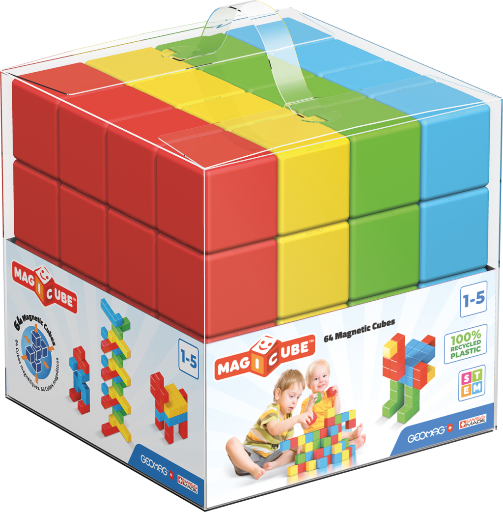 Magnetické kostičky s unikátní vnitřní konstrukcí, díky které se vzájemně přitahují ze všech stran. Obsahuje 64 magnetických kostiček ve čtyřech barvách. Vhodné i jako vzdělávací pomůcka do škol pro výuku matematiky a geometrie.