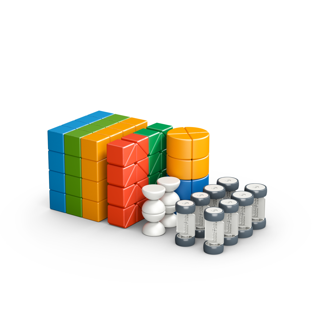 Kromě magnetických krychliček jsou součástí této sady také další tři magnetické tvary v šesti barevných variantách a sady koleček. Obsahuje celkem 128 dílků. Vhodné od 1 roku. Baleno volně ložené v kartonové krabici.