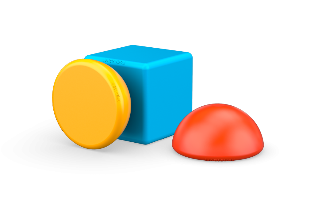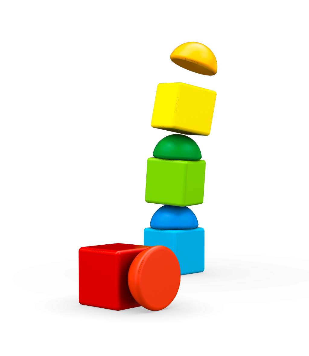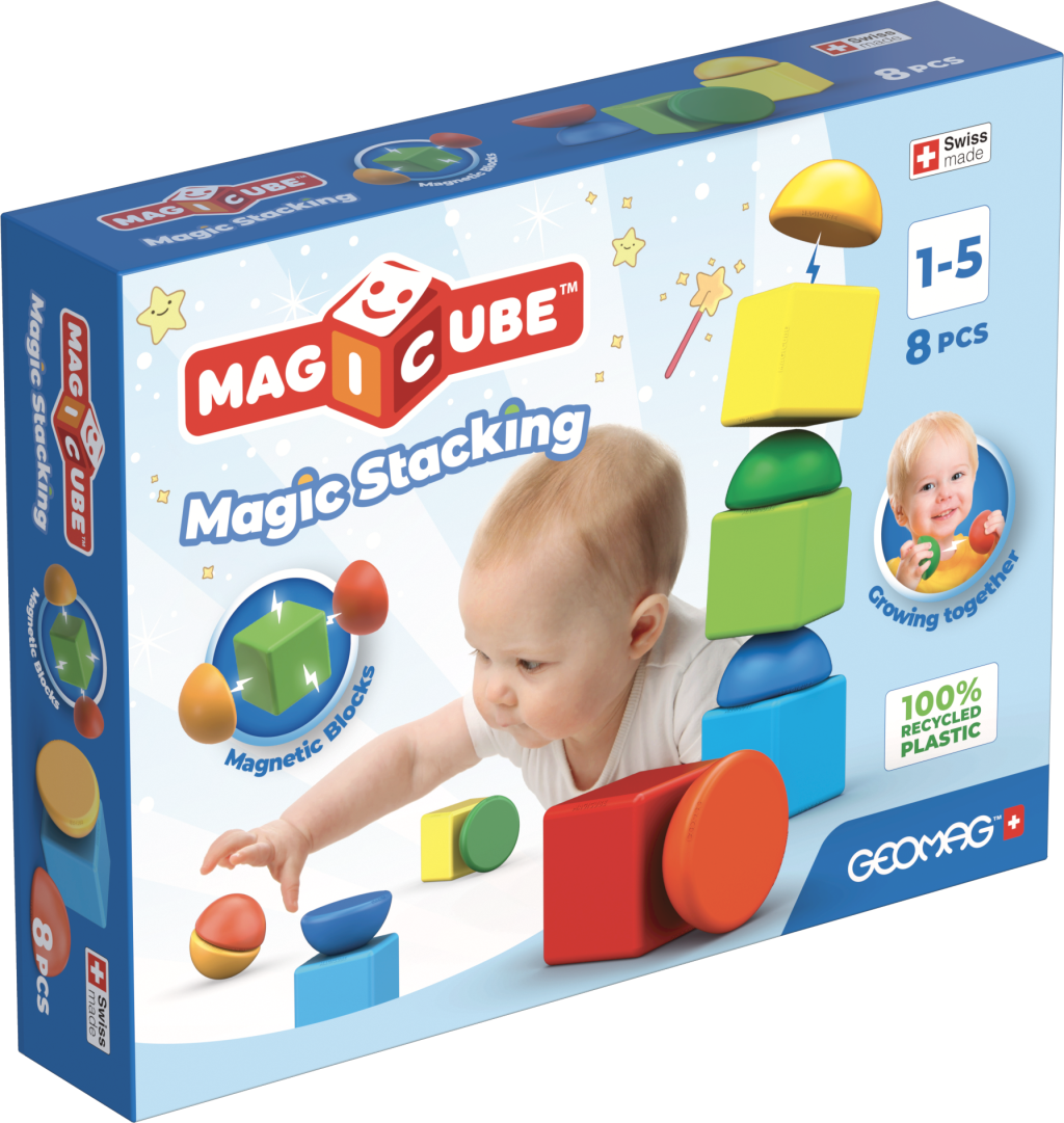 Stavění věží baví i malá miminka. Obsahuje čtyři magnetické polokoule a čtyři magnetické krychličky v kombinaci osmi barev. Vhodné od 1 roku.