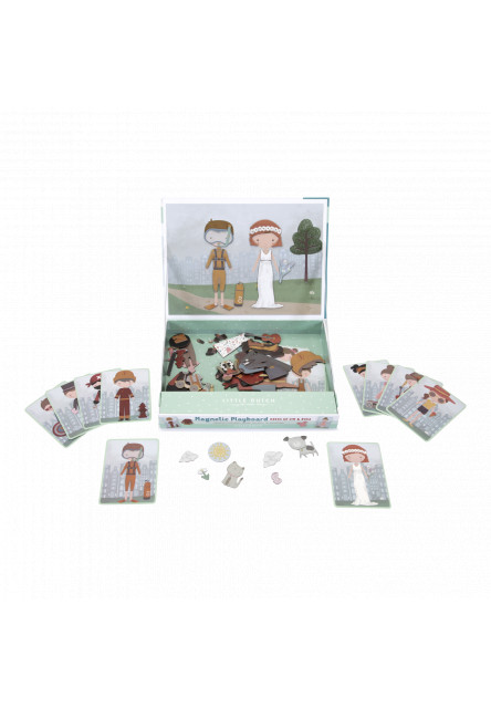 Oblečte Jima a Rosu! S touto magnetickou hrou může vaše dítě oblékat postavičky Jima a Rosy podle vzoru na kartě nebo použít vlastní fantazii a vytvářet své originální kombinace. Tato skvělá hra zabaví děti doma i na cestách.