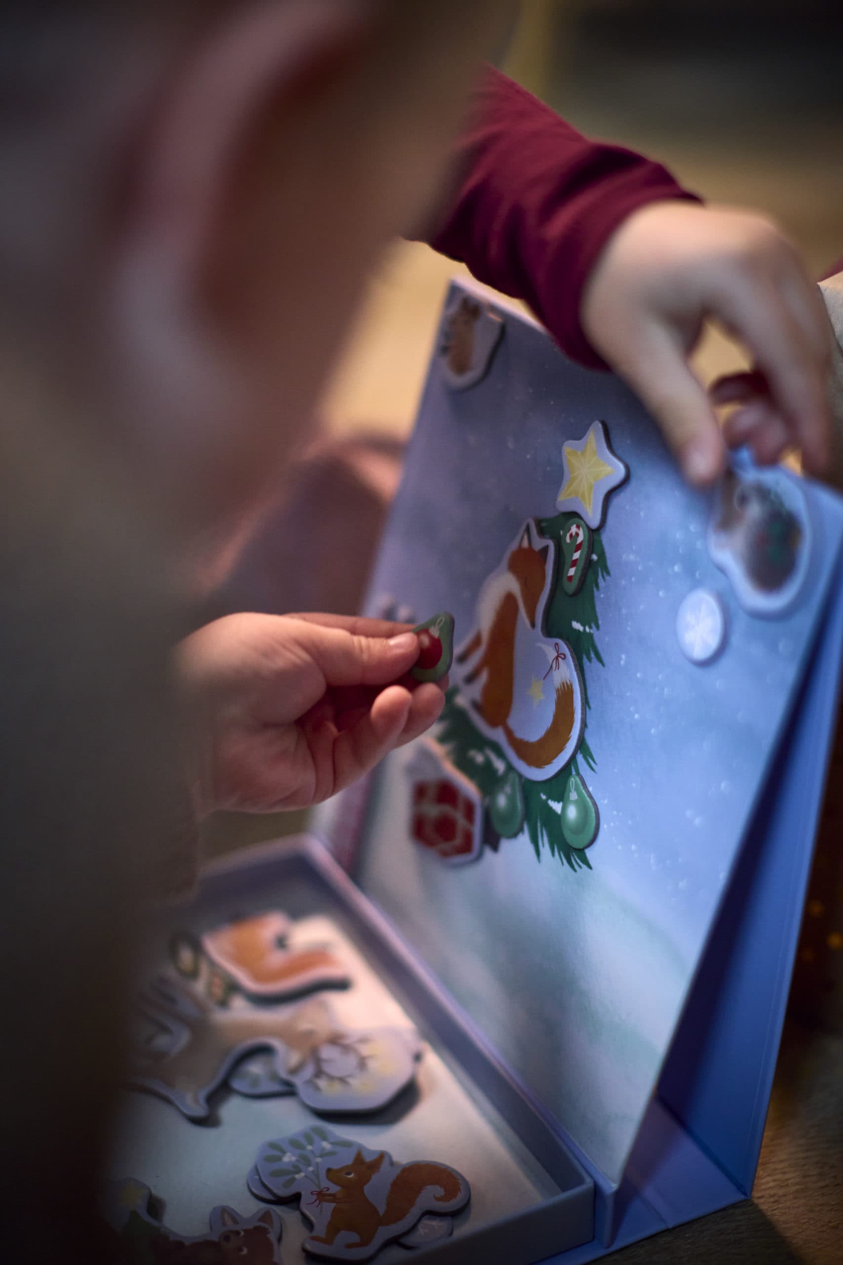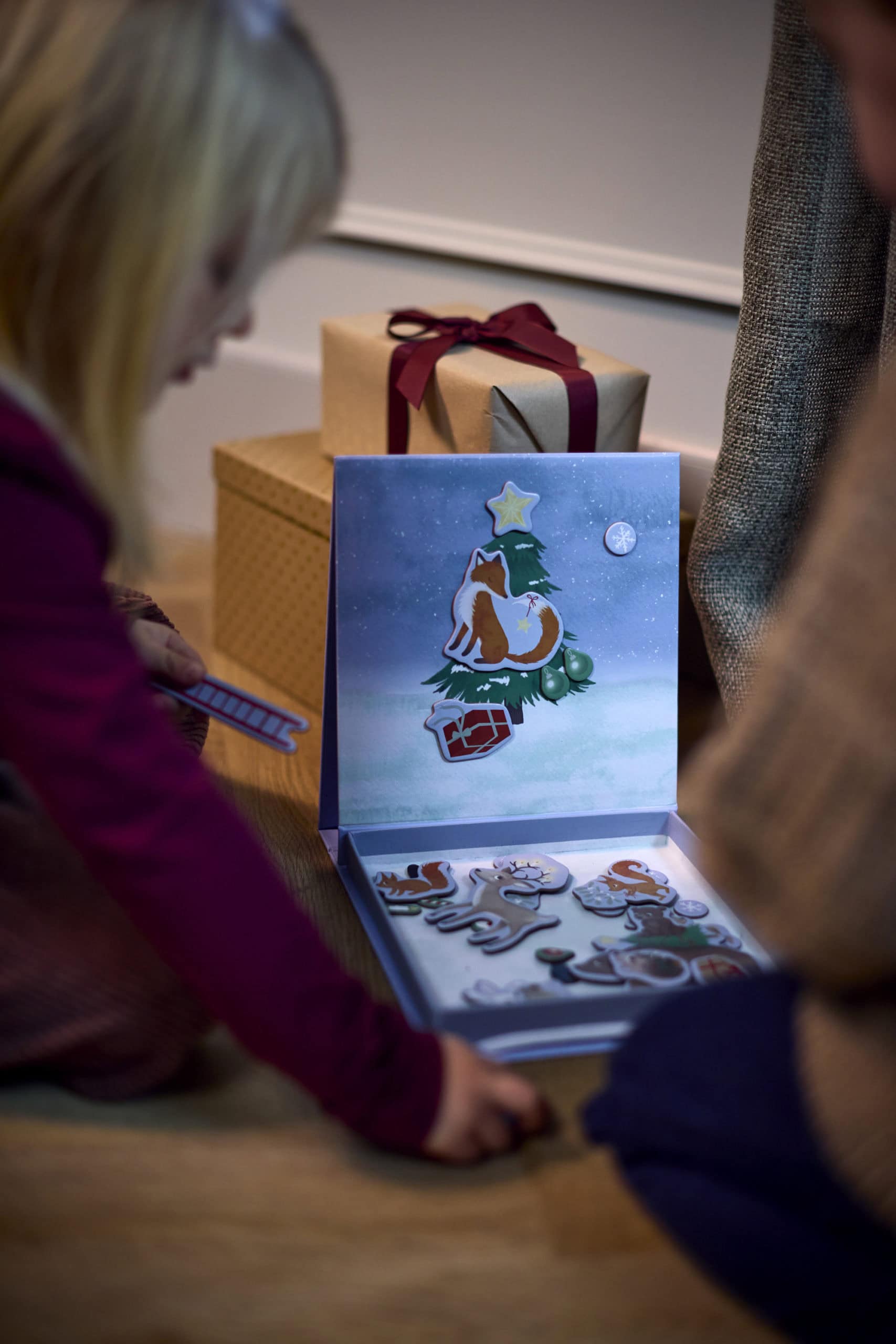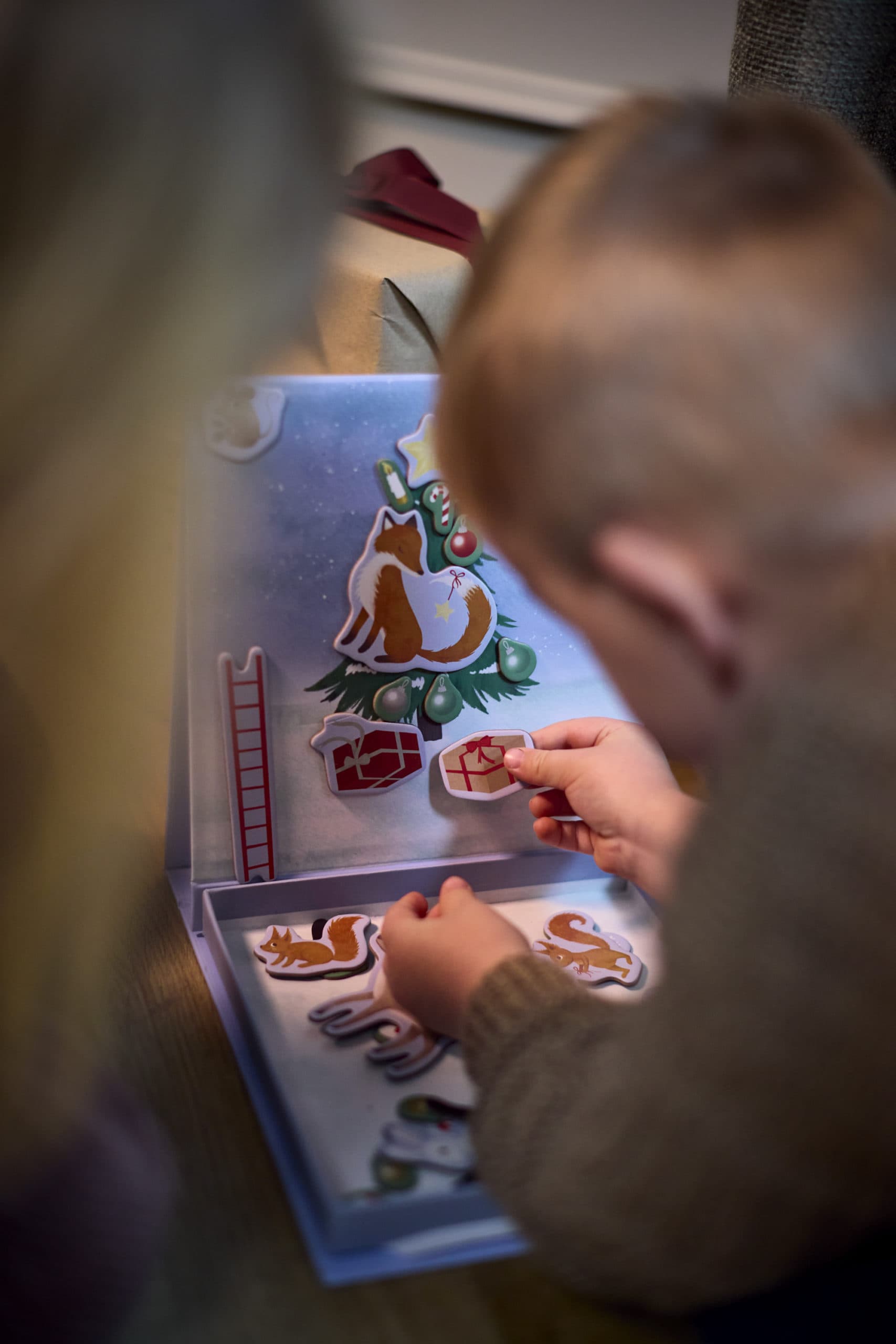 Vstúpte do čarovného vianočného sveta, kde kreativita nemá hranice! S touto sviatočnou magnetickou hrou môže vaše dieťa ozdobiť vianočný stromček, uložiť darčeky pod neho a prizvať na oslavu svoje obľúbené zvieratká.