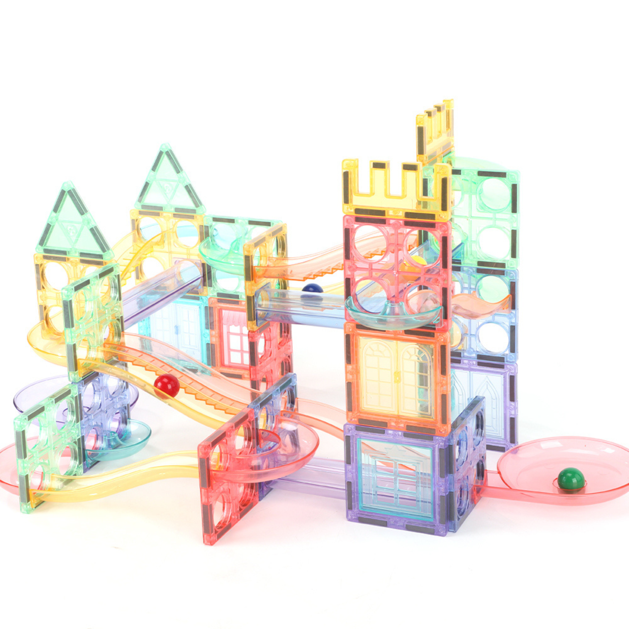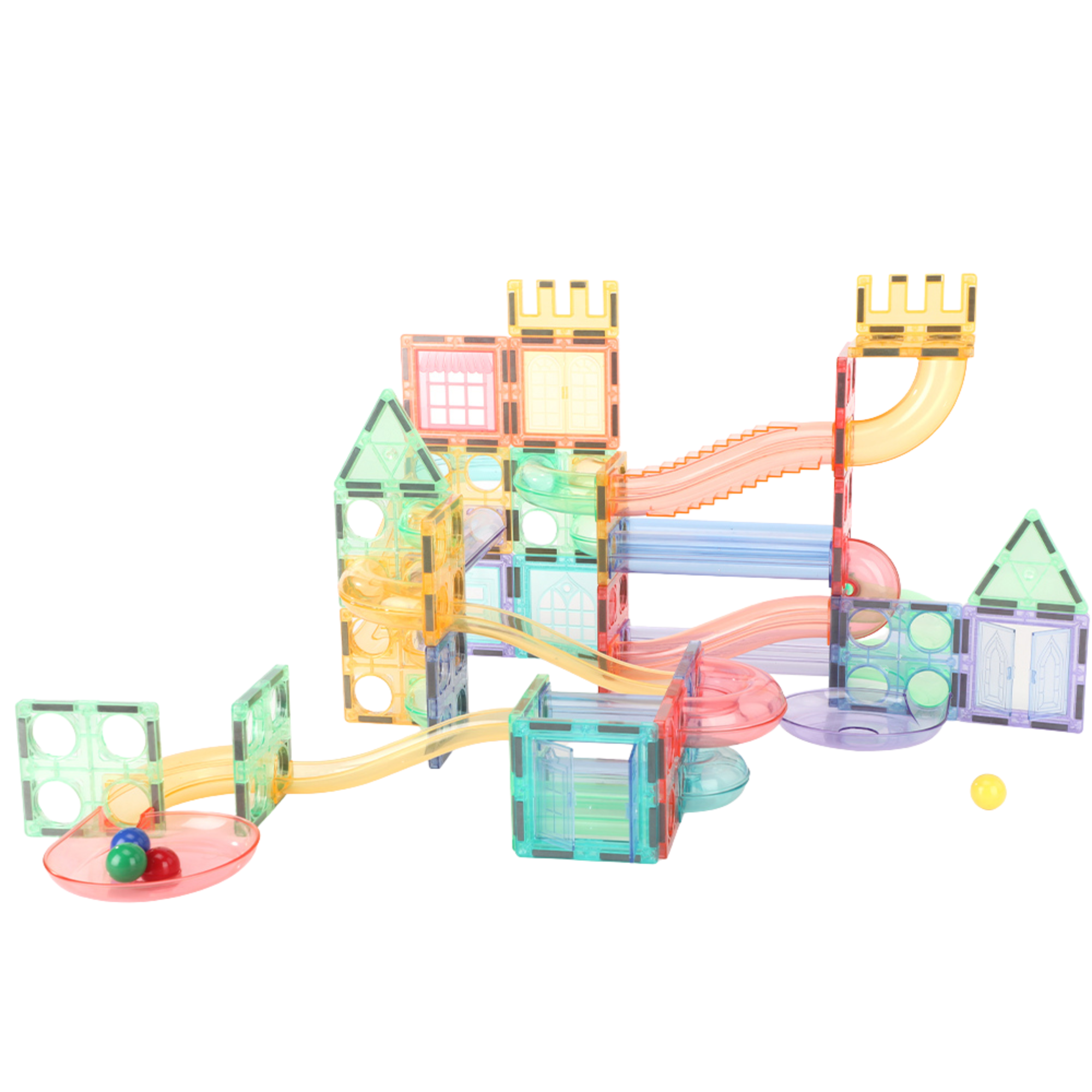 Magnetická stavebnica Oplo Toys - Guľôčková dráha Macaron 108 KS