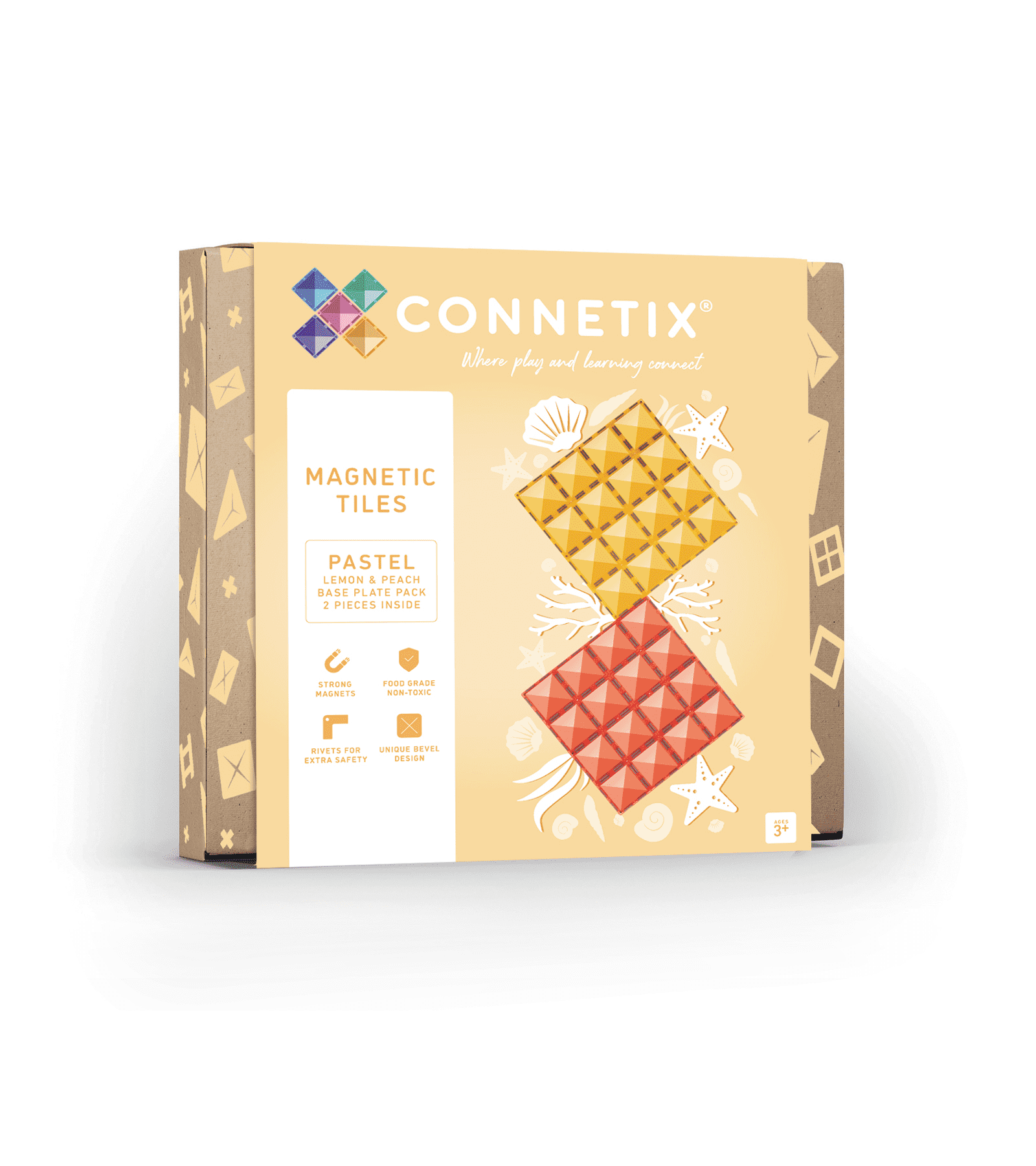 Popusťte uzdu inspirativním nápadům a vytvořte si pevný základ pro svou hru s CONNETIX! Dvoudílné magnetické stavební desky CONNETIX s motivem citronu a broskve jsou silné magnetické stavební desky o rozměrech 30 cm x 30 x m, které vám pomohou postavit dvakrát vyšší díly. Sledujte, jak se s výtvory stupňuje vzrušení a dosahují výšin jako nikdy předtím!