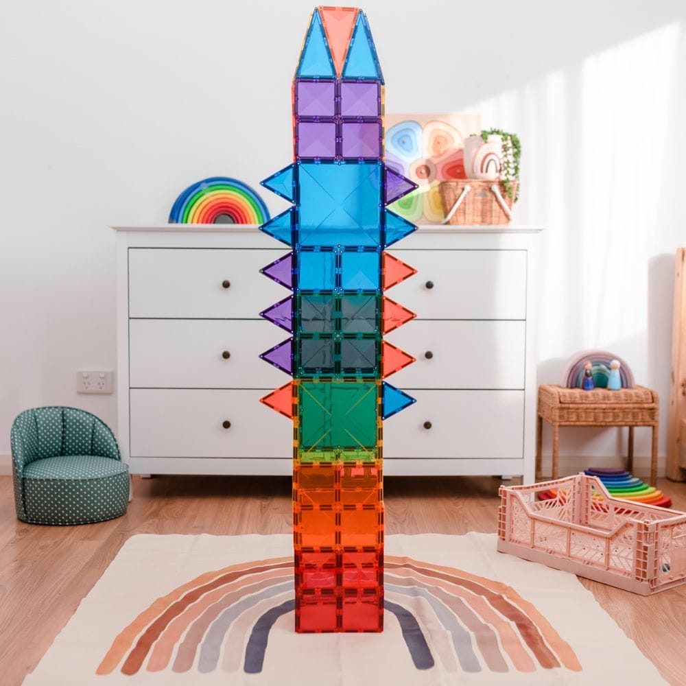 Kreativní sada Rainbow se 100 dílky nabízí nekonečné možnosti pro kreativitu a učení prostřednictvím HRY a obsahuje řadu tvarů v různých barvách duhy, včetně plotů a zárubní. Je to skvělá volba pro začátek rodinného hraní a stavění VĚTŠÍCH výtvorů od Connetix!