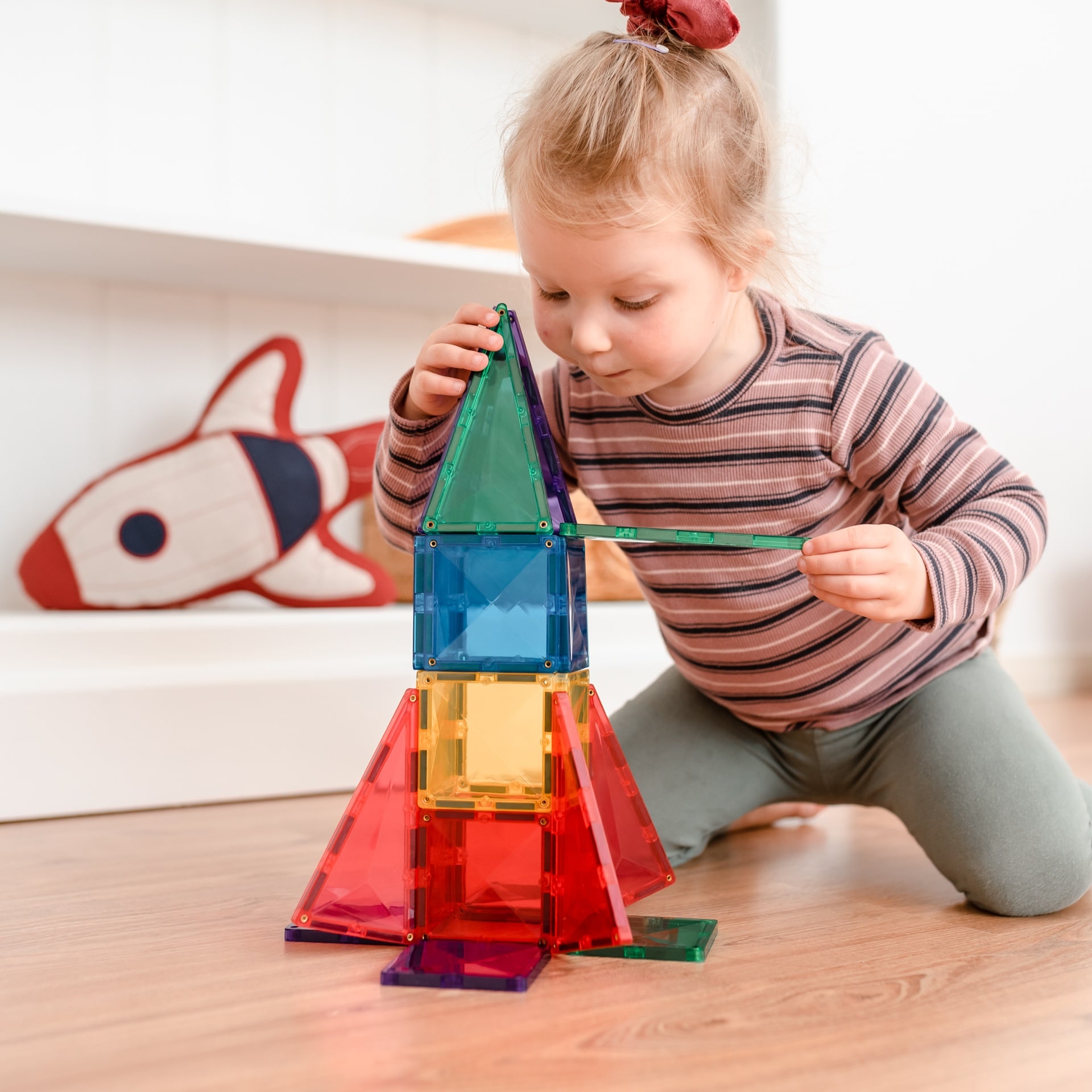 Tato sada podporuje fantazii a učení prostřednictvím HRY a umožňuje dětem stavět nekonečné množství výtvorů, jako jsou domy, malé hrady, farmy nebo zoologické zahrady, parkoviště, raketové lodě, věže, puzzle, třídicí boxy a skládačky na mince, a to vše při zkoumání magnetických konceptů, poznávání tvarů, vzorů a barev, rozvíjení jemné motoriky a dovedností v řešení problémů a mnoho dalšího!