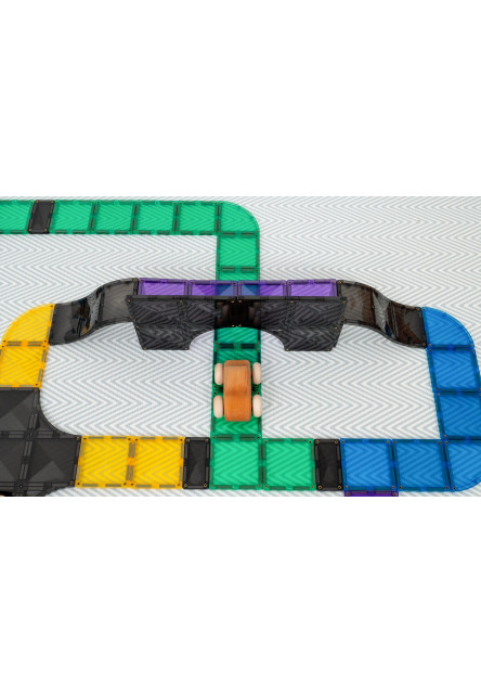 Balení CONNETIX 16 kusů ramp a křižovatek obsahuje magnetické dlaždice inspirované silnicemi, včetně čtvrtkruhů, zatáček, křižovatek a dlouhých a krátkých ramp, vše v elegantním černém odstínu. Jsou navrženy tak, aby podnítily nekonečná stavitelská dobrodružství, povýšily tvorbu skateparků, závodních drah, domina a dokonce i horských drah, když budete stavět znovu a znovu.