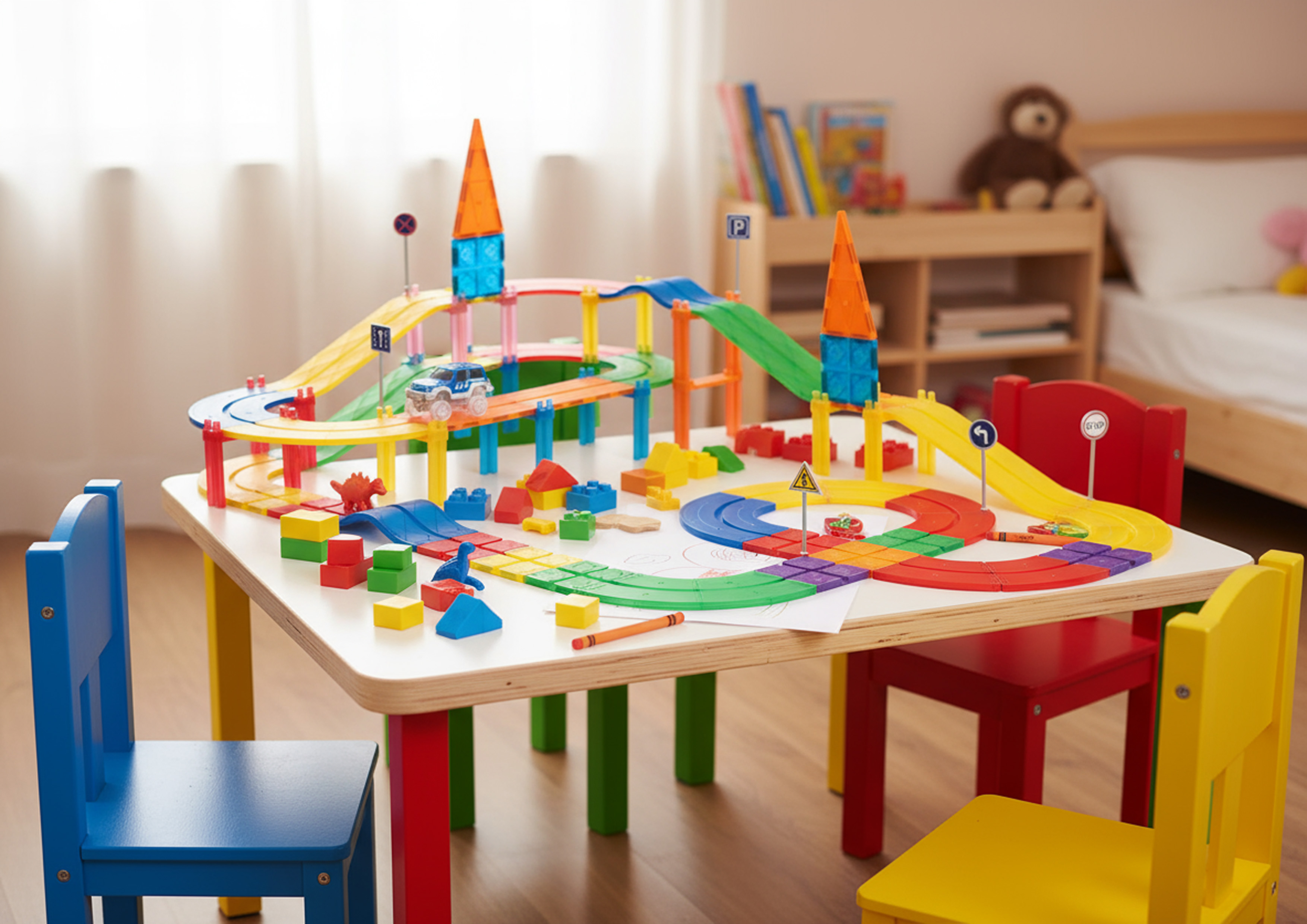 Zaži svet plný pohybu, farieb a fantázie! S magnetickou závodnou dráhou Oplo Toys - Rainbow 100 KS si deti môžu vytvoriť vlastnú dráhu, po ktorej sa autíčka s radosťou premávajú hore dole po dráhe. Silné magnety udržia všetky dieliky pevne pokope, takže stavanie je jednoduché, bezpečné a hlavne zábavné.