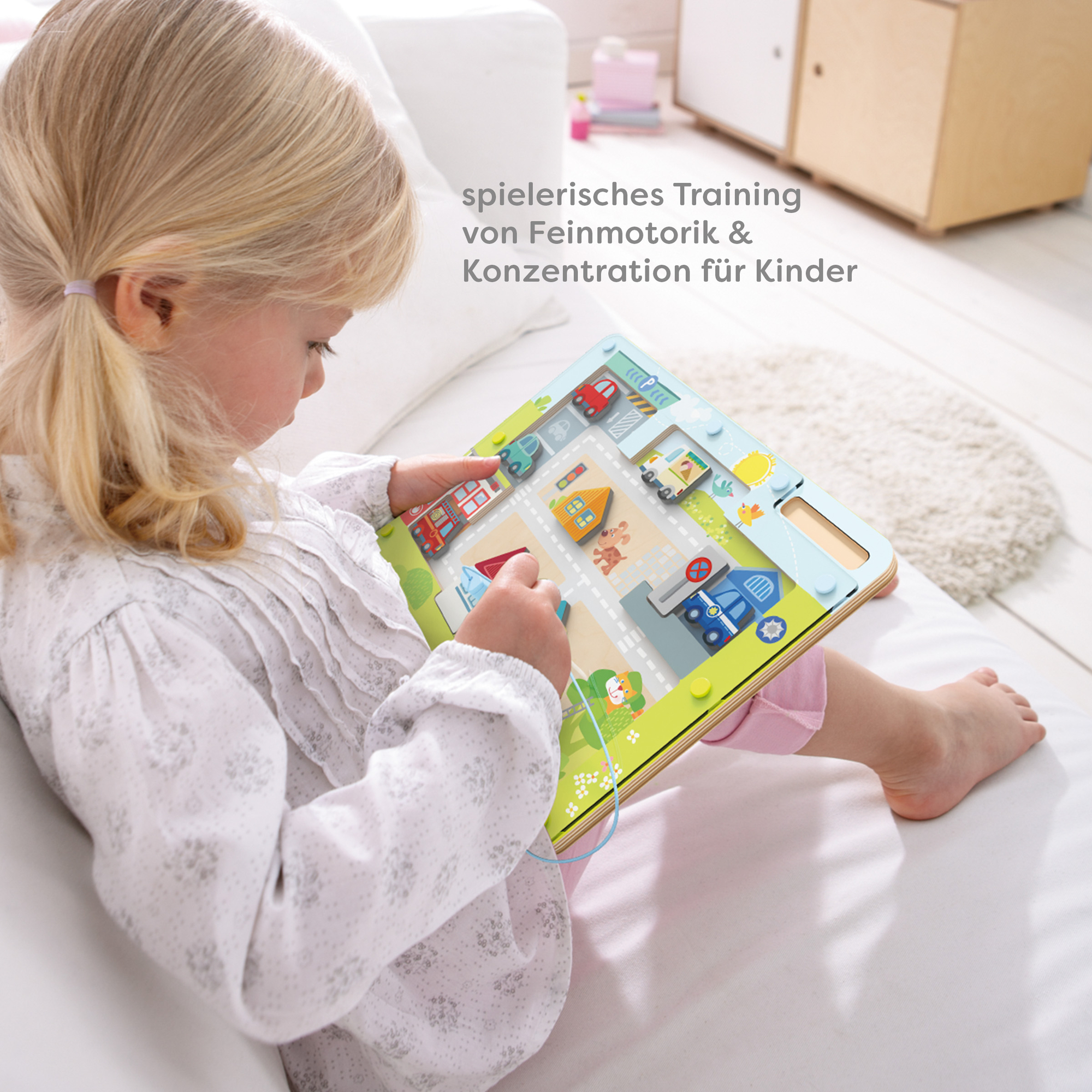 S magnetickým perom môžu deti otáčať svet tak, ako chcú. Magnetické obrázkové dlaždice sa bez námahy kĺžu po doske, čo deťom umožňuje ich usporiadanie znova a znova. Či už ide o navádzanie auta na parkovacie miesto alebo zastavenie pri elektrickej nabíjacej stanici, nápaditá hra je vždy v pohybe. Najlepšia časť? Je tu dostatok voľného miesta pre vozidlá, značky a ďalšie, aby sa mohli pohybovať nielen dopredu a dozadu, ale aj otáčať o celých 360° v ľubovoľnom smere. Plnou rýchlosťou vpred!
