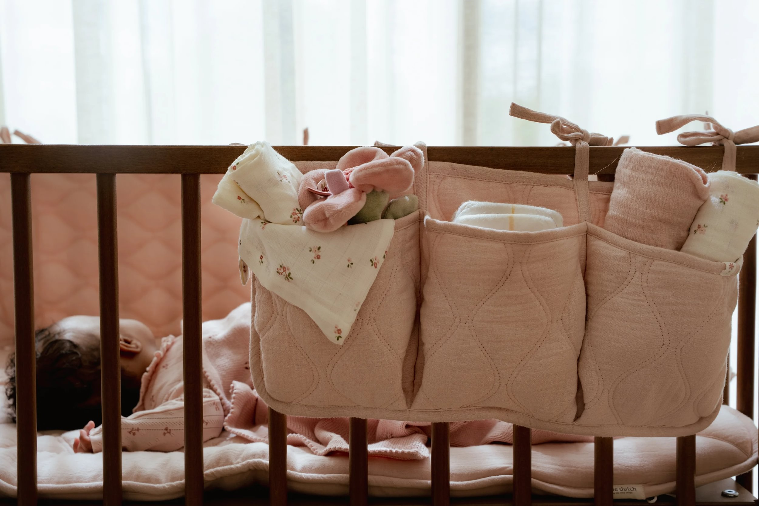 • Snadné uchycení - praktické šňůrky umožňují jednoduché a pevné přivázání k bočnicím postýlky