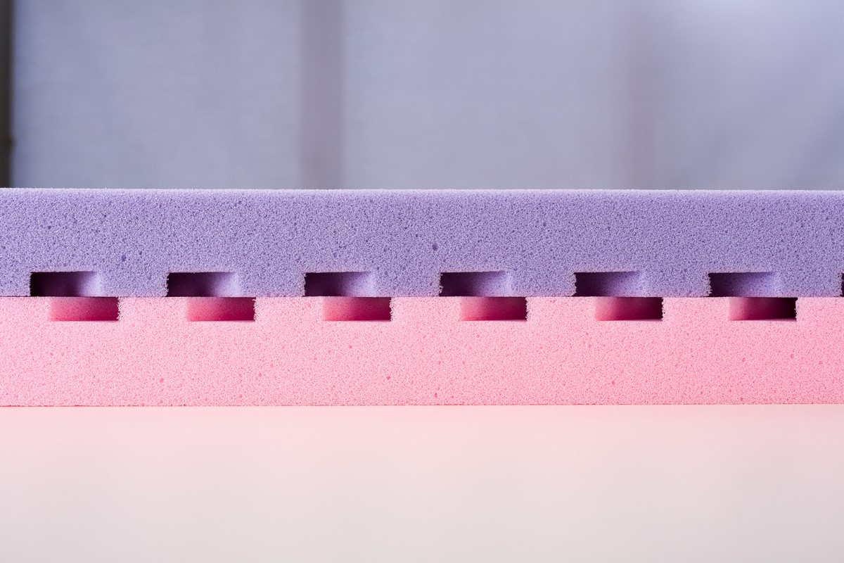 - bodově pružná studená pěna s fialovou ložnou plochou pro kojence a růžovou ložnou plochou pro batolata