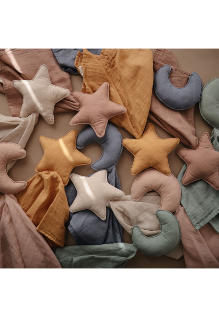 Mushie vytvára kombináciou minimalizmu, jemných zemitých a pastelových farieb a čistých línií pocit harmónie. Svojím nadčasovým a elegantným dizajnom spríjemnia Mushie produkty každý moment s vaším dieťatkom a spravia ho ešte výnimočnejší. Mushie – prémiová dizajnová značka pre najmenších. Mushie maznáčik s hviezdičkou je vyrobený zo 100%25 organickej bavlny a stane sa najobľúbenejším spoločníkom dieťatka už od narodenia. Upokojuje ho a dodáva mu pocit bezpečia, slúži na pritúlenie či pohladenie. Na cestách mu pripomína vôňu domova. Pre mnohé detičky je takýto maznáčik nenahraditeľným pri upokojení alebo zaspávaní. Starostlivosť: Pranie na 30°C v práčke, jemný program. Nesušiť v sušičke, nebieliť, nežehliť ani nečistiť chemicky. Zloženie: 100%25 organická bavlna (látka), polyester (výplň). Rozmery: 30,5 cm x 50,8 cm.