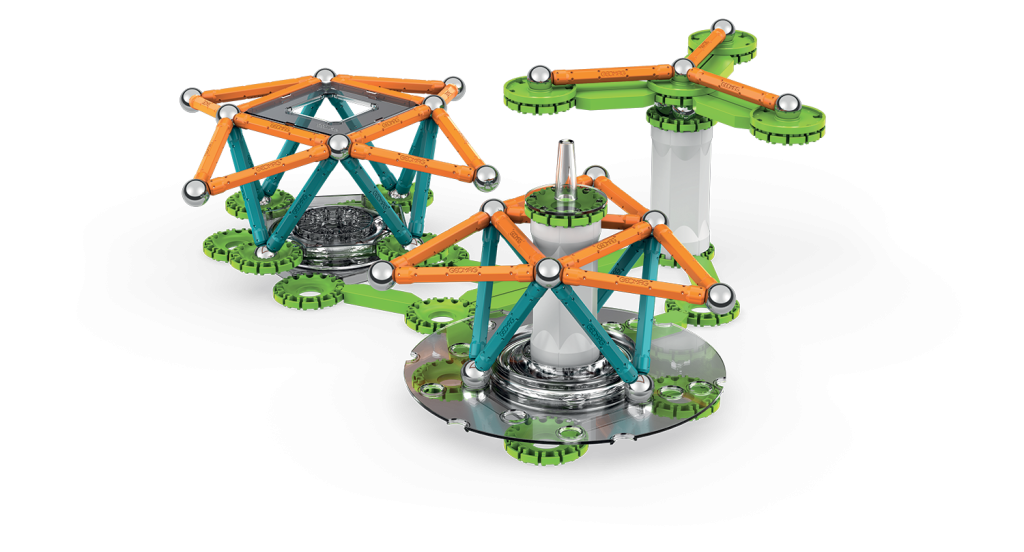 Zkus použít klasické Geomag kuličky jako ložiska a vytvoř si modely, které jen pomocí samotné magnetické síly rozpohybuješ! Postavíš víc menších modelů nebo jeden velký? Bude tě to bavit! Stavebnice obsahuje celkem 160 dílků. Všechny barevné plastové části stavebnice jsou z recyklovaného plastu. Doporučeno pro děti od 7 let.