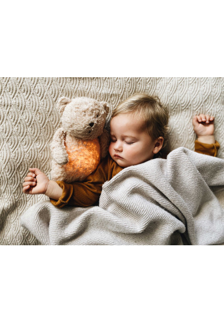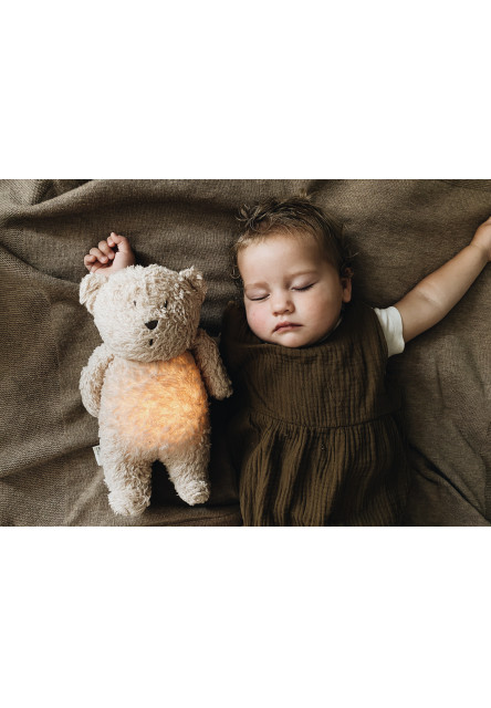 Bříško medvídka svítí a slouží jako noční světlo s výběrem sedmi barev svícení. Jemné světlo pomáhá dítěti cítit se v postýlce bezpečně. Světlo je možné zapnout i bez zvuků. Při zapnuté funkci Shake světlo zapnete zatřesením hračkou. Medvídek se při svícení nijak nezahřívá a je pro dítě zcela bezpečný.