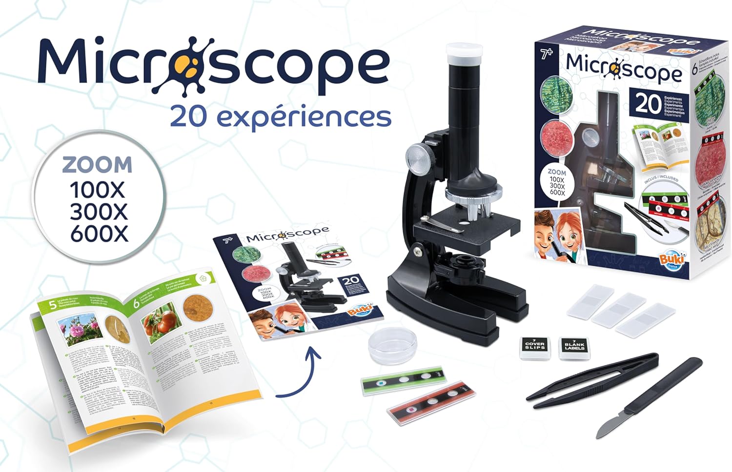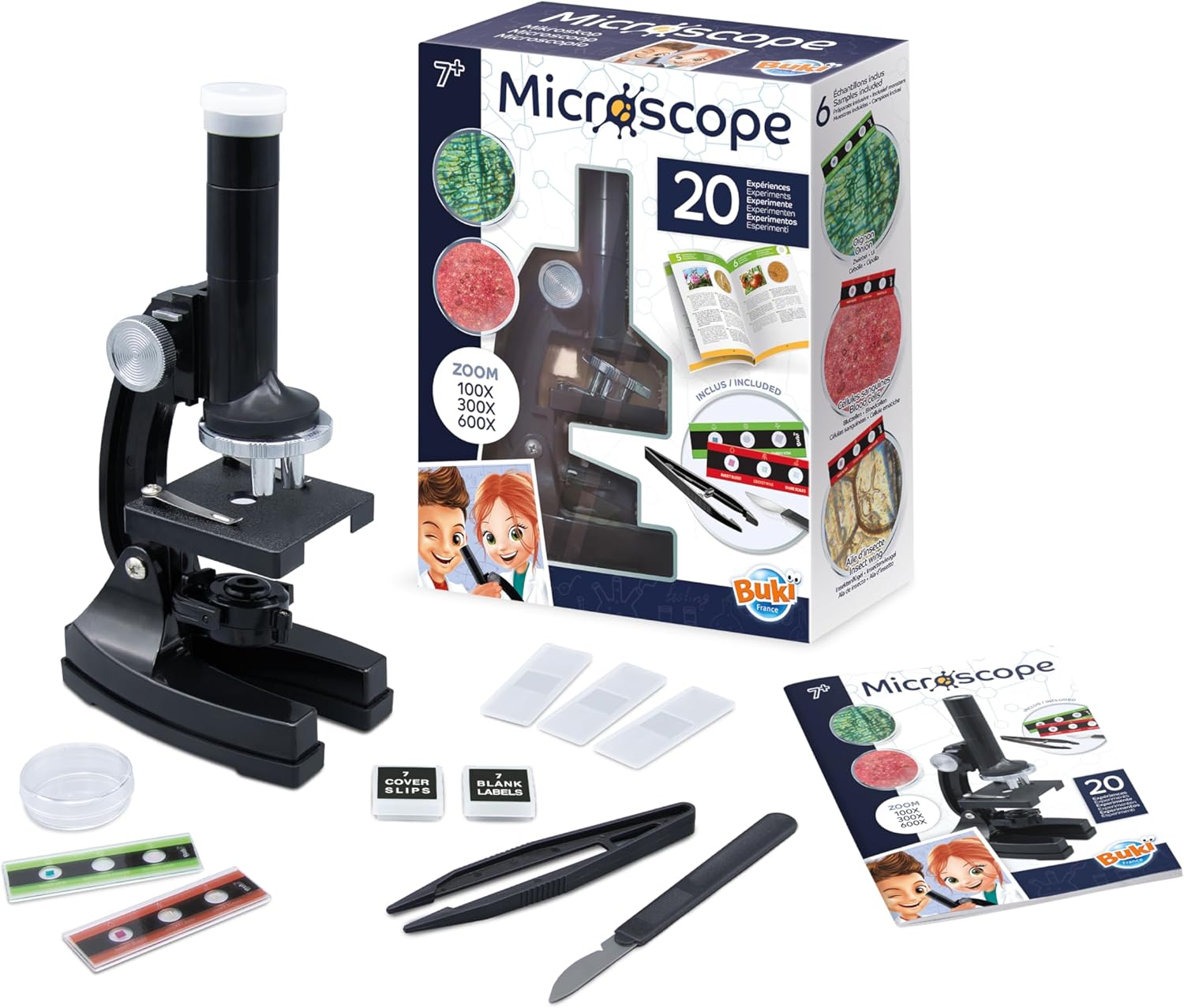 Vďaka trom zväčšeniam až do 600× môžete pozorovať všetko od rastlinných štruktúr až po mikroskopické časti materiálov. Širokouhlý okulár zaručuje väčšiu pozorovaciu plochu a LED osvetlenie zabezpečí jasný obraz pri každom experimente.