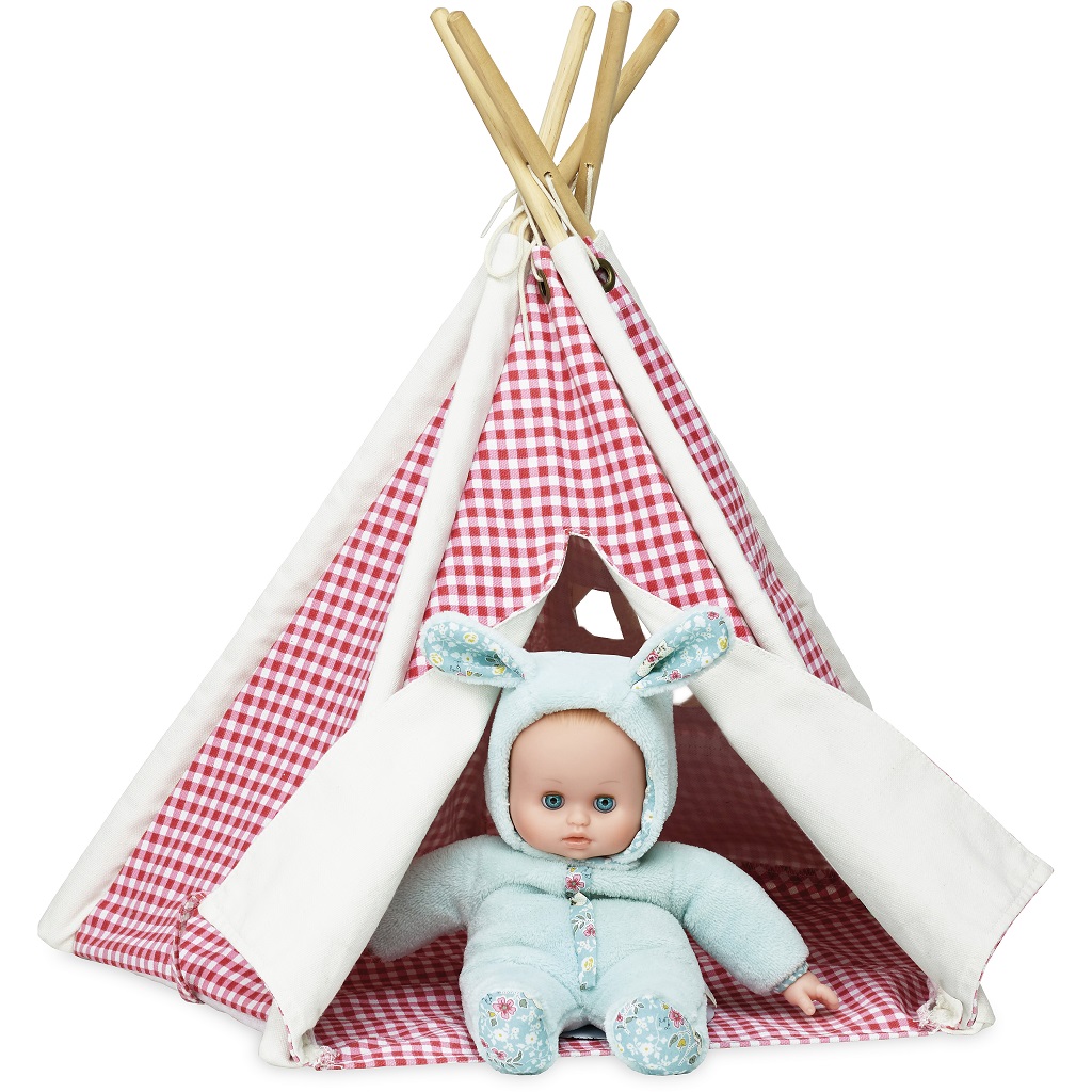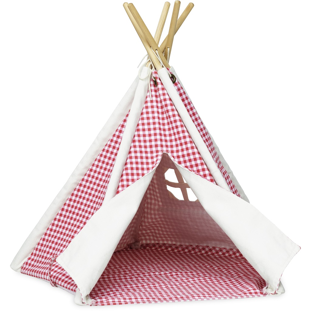 Krásne kárované típí v mini prevedení, ideálne pre bábiky. Drevený základ s textilnou prikrývkou je jednoduché zložiť. Textil je červeno-biely. Hlavné vlastnosti: típí pre bábikypevná konštrukcia