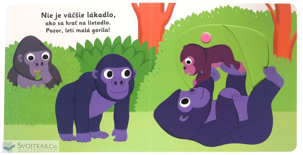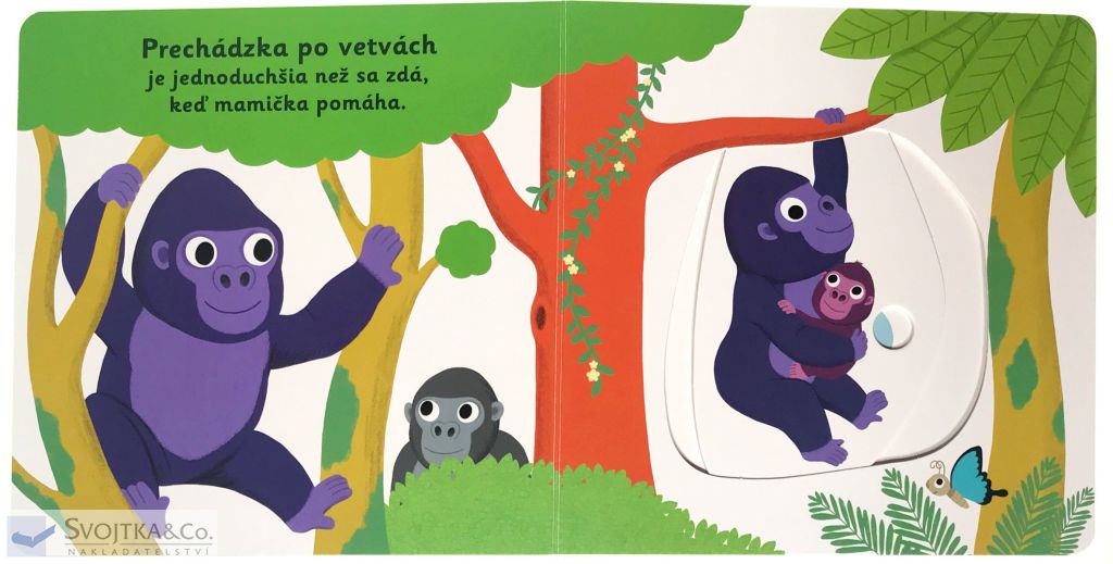 „Prechádzať sa po vetvách je jednoduchšie, než sa zdá, keď mamička pomáha.“ Objavovať svet s týmto leporelom pre najmenšie deti od jedného roka je také zábavné! Pevné stránky s pohyblivými prvkami precvičia aj jemnú motoriku. Stačí len vložiť prštek do správneho otvoru a zľahka vysunúť, zatiahnuť alebo otočiť a hneď bude váš malý objaviteľ poznať odpovede.