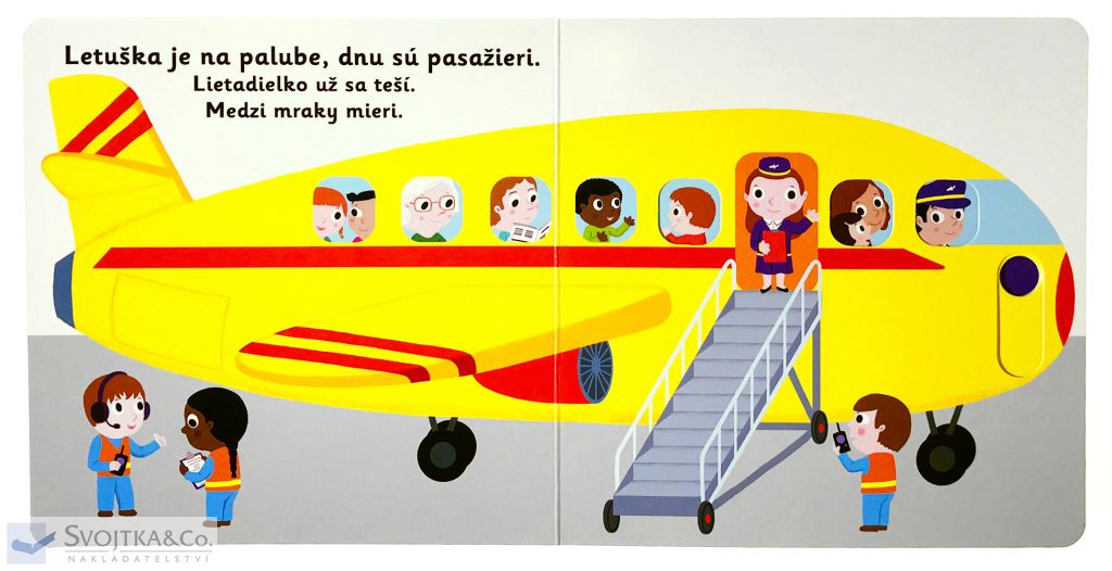 Letuška je na palube, dnu sú pasažieri, lietadielko už sa teší – medzi mraky mieri. Objavovať svet s...zobrazit více