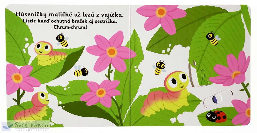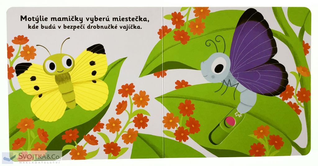 A keď sa z kukly vykľuje, húsenicou už nebude. Objavovať svet s týmto leporelom pre najmenšie deti od jedného roka je také zábavné! Pevné stránky s pohyblivými prvkami precvičia aj jemnú motoriku. Stačí len vložiť prštek do správneho otvoru, zľahka vysunúť, zatiahnuť alebo otočiť, a hneď bude váš malý objaviteľ poznať odpovede.