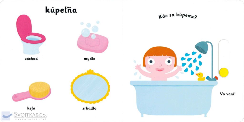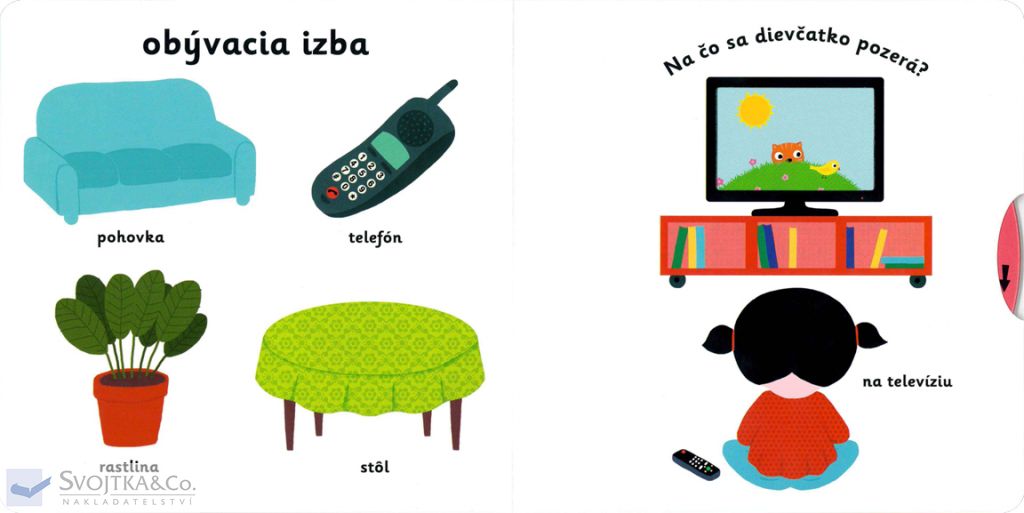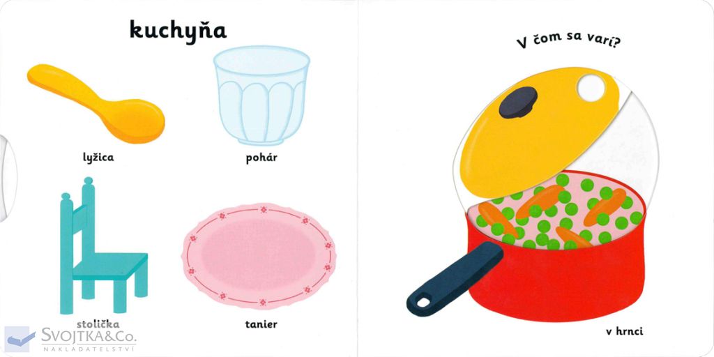 Čo všetko máme doma? Na čo sa pozeráme v obývacej izbe? V čom si v kuchyni uvaríme? Kde máme poukladané odevy? Kam sa pôjdeme pred spaním vykúpať? Nauč sa pomenovať všetky časti domu, nábytok a výbavu, ktorá sa môže nachádzať doma. Pestrofarebné ilustrácie a posuvné prvky v tomto leporele rozširujú detskú slovnú zásobu zábavnou formou. Pohyblivé elementy rozvíjajú jemnú motoriku dieťaťa a prispievajú k živosti ilustrácií.