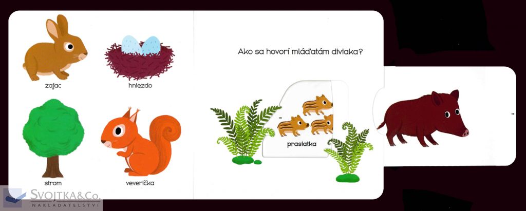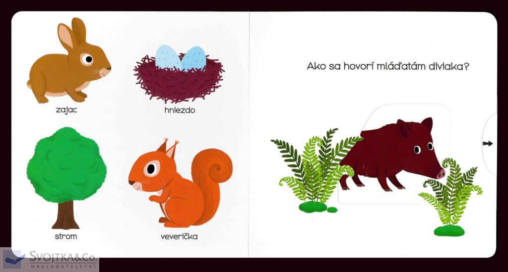 Ako vyzerá jeleň so statným parožím? Čo to tu vonia pod lístím? Nie sú to huby? Vieš, ako sa hovorí mláďatám diviaka? Ktorý nočný vták sídli v dutine stromu? Objavuj les a všetky zvieratká, ktoré v ňom bývajú. Toto leporelo pre najmenších je vďaka najrôznejším posuvným prvkom vhodné pre rozvoj jemnej motoriky dieťaťa. Pri prezeraní pestrých ilustrácií sa dieťa zoznámi s lesnými zvieratami a rastlinami.