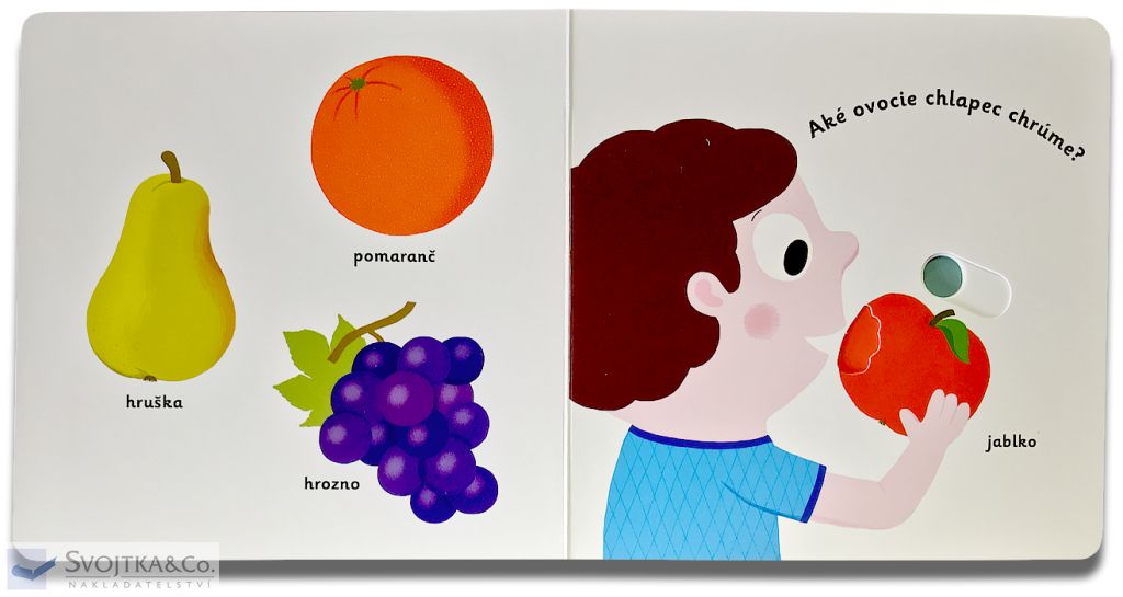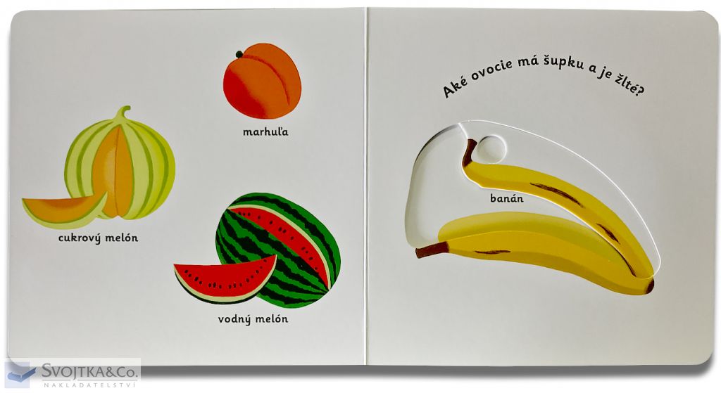 Nauč sa poznávať jednotlivé druhy ovocia. Pestrofarebné ilustrácie a posuvné prvky v tomto leporele zábavnou formou zoznamujú deti s ovocím a farbami. Pohyblivé elementy v tejto knihe rozvíjajú jemnú motoriku dieťaťa a prispievajú k živosti ilustrácií.