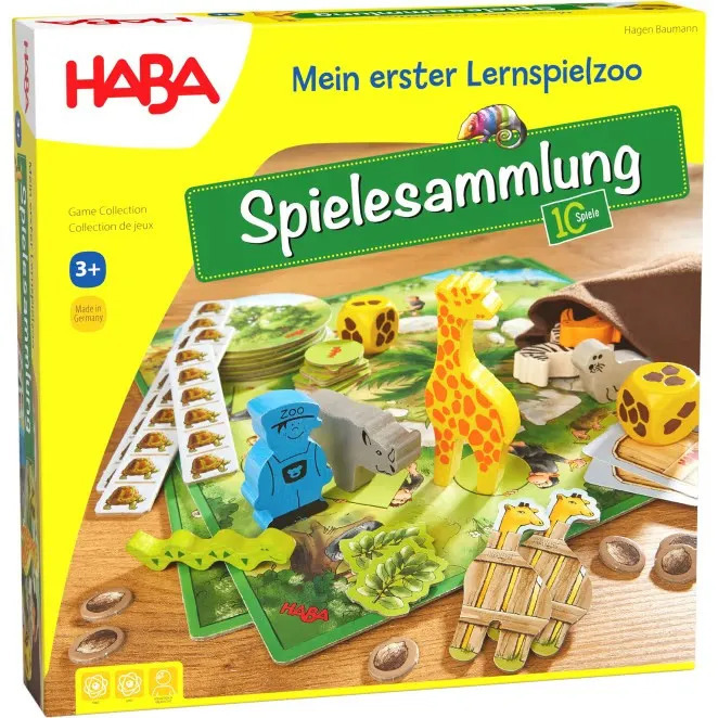 V zoologickej záhrade je dnes zmätok! Opice sa bláznia, nenásytný nosorožec požiera všetko, čo mu príde pod ruku, a chameleóny neustále menia farby. Vďaka desiatim rôznym hrám si hráči zlepšujú koncentráciu, hmat, chápanie množstva a čísel a tiež rozpoznávanie farieb a tvarov. Kolekcia vzdelávacích hier pre deti od 3 alebo od 4 rokov. Týchto desať rozmanitých hier, ktoré sa všetky týkajú témy zoologickej záhrady, umožní vášmu dieťaťu rozvíjať sa v rôznych oblastiach. Nájdete tu hry, ktoré sa zameriavajú na pochopenie počtu a množstva, hmat, rozpoznávanie farieb a tvarov, prvé počítanie, sústredenie a pamäť. Učenie prebieha počas hry prirodzene a takmer samo. Dúfame, že si pri hraní užijete s vaším dieťaťom veľa zábavy! 10 vzdelávacích hier s tematikou zoologickej záhrady Rozvíja koncentráciu, logické myslenie, pamäť a motoriku Podporuje chápanie počtu, množstva, farieb a tvarov Obsah balenia: 1 nosorožec, 1 zebra, 1 plameniak, 1 tuleň, 1 žirafa, 1 tukan, 1 had, 1 korytnačka 1 ošetrovateľ Tim, 2 žirafie kocky, 1 látkové vrecko, herné dosky 30 kariet s debnami s ovocím, 22 žiráf s číslom a bez čísla 12 geometrických tvarov – 3x štvorce, obdĺžnik, trojuholník a koliesko Dieliky s chameleónom, 1 zvieracia minca 8 kartónových dielikov so zvieratami Pravidlá hry Vhodné pre deti od 3 rokov.