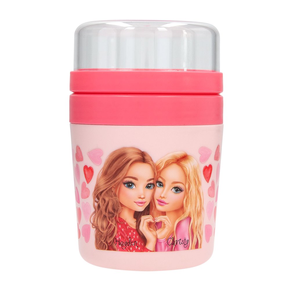 TOPModel skvelý hrnček na cesty pre vašu obľúbenú desiatu! Je v rôznych odtieňoch ružovej so srdiečkami a milou potlačou TOPModel. Suché ingrediencie (cereálie, ovocie, oriešky) je možné prepravovať samostatne v priehľadnom viečku s kapacitou 200ml, pohár pod ním má kapacitu 500ml a vďaka tesniacim krúžkom sa bezpečne uzatvára na prepravu tekutiny. Môžete prepravovať spolu aj samostatne. Pripravte si aj svoj obľúbený šalát do tohto skvelého hrnčeka! Všetko je o vašej fantázii! Nie je vhodné do mikrovlnky ani umývačky riadu kvôli potlači, vyrobené z BPAfree plastu. Rozmery:15,5x8,5x9,2cm