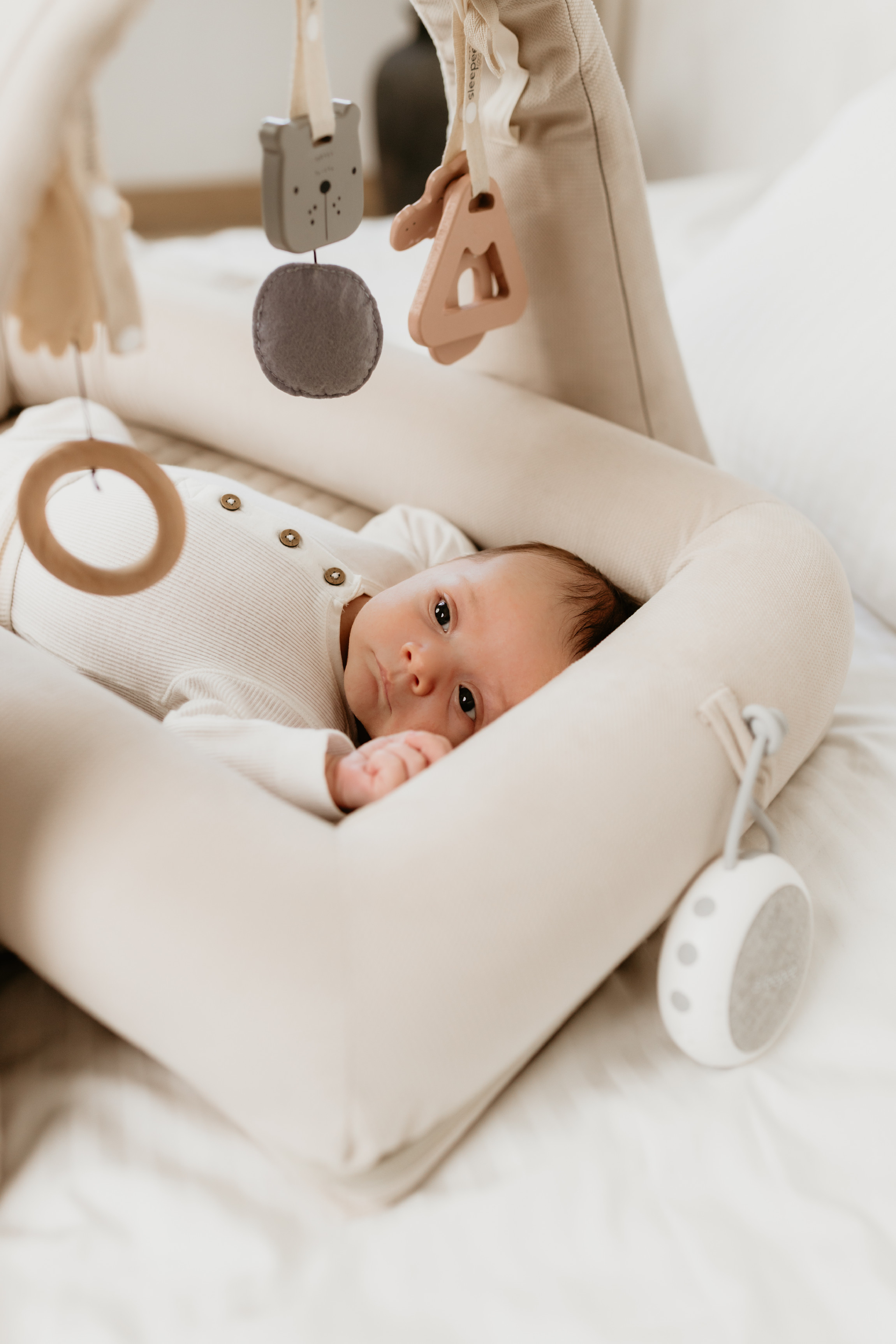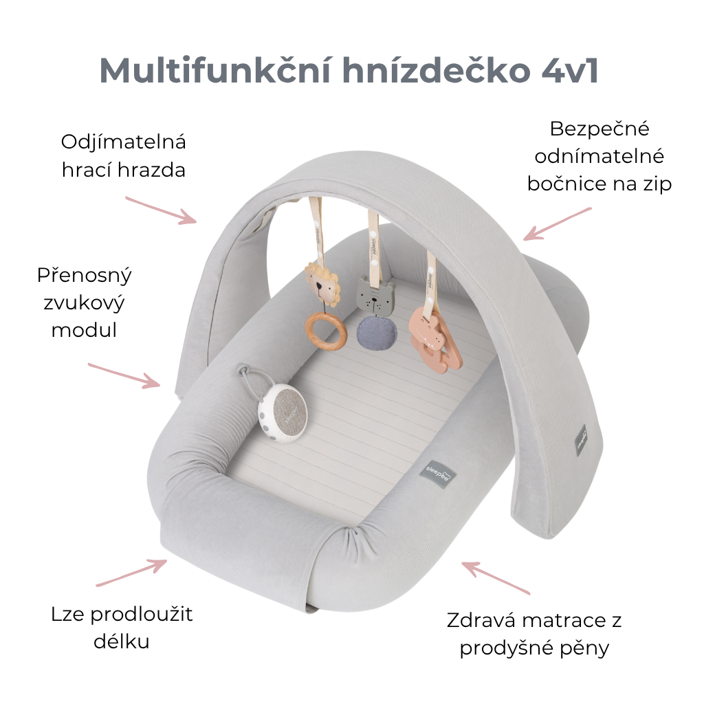 Multifunkční hnízdečko pro miminko s hrazdičkou a bílým šumem 4v1 Sleepee Sand