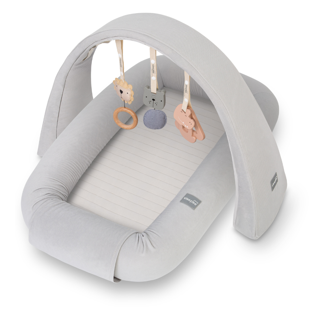 Sleepee Multifunkční hnízdečko pro miminko s hrazdičkou a hračkami 3 v 1 Sleepee Grey